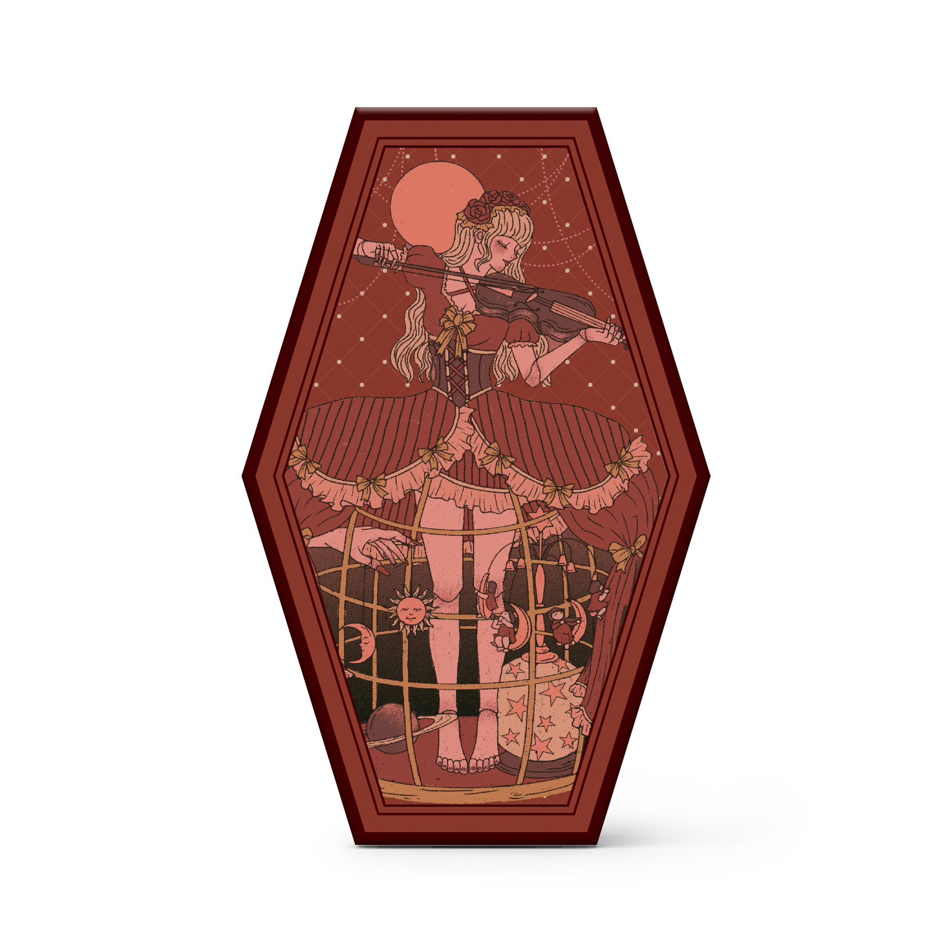 The Aisling Tarot unveils a vintage dreamscape scented with romantic allure, where the play of light and shadow guides us through 85 lofty scenes. The deck comes encased in a hexagonal, mirror-shaped box and boasts a delicate, refined aesthetic. Rich colors merge with intricate details, with each figure exuding grace. The overall imagery evokes solemnity with a dreamlike opulence.