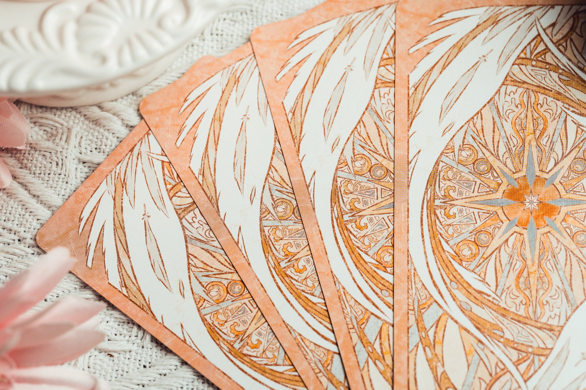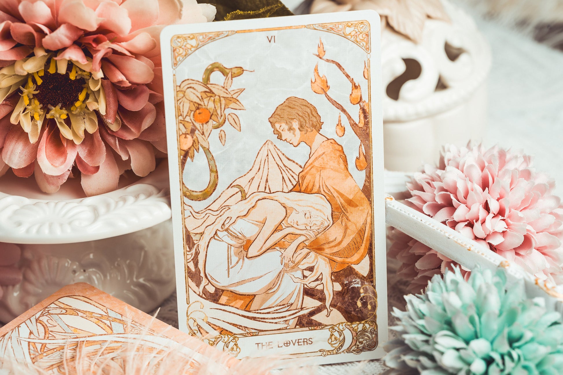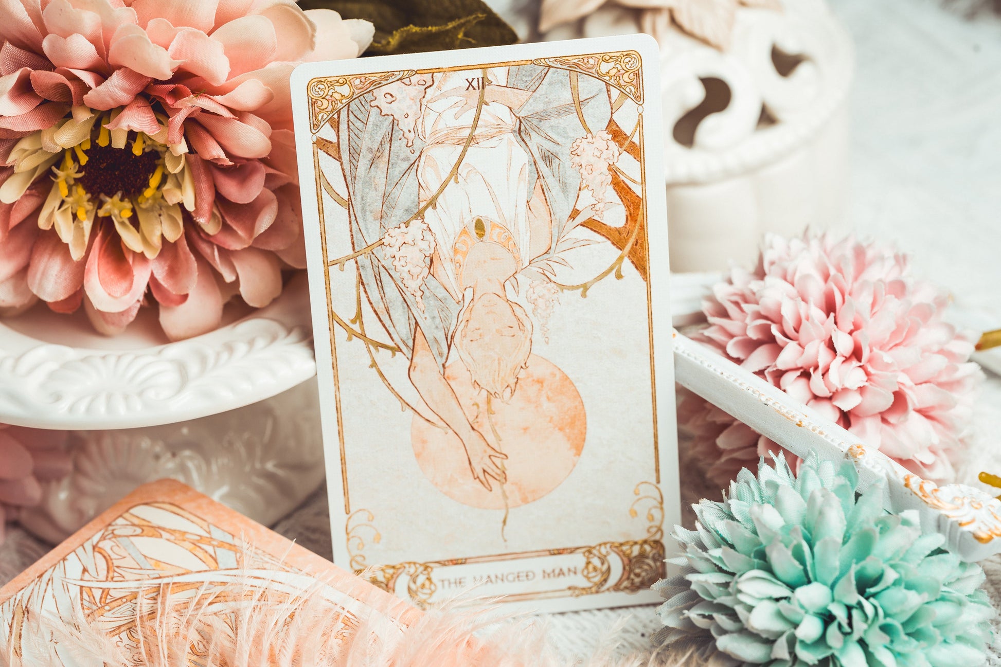 Inspirado en el icónico estilo Art Nouveau del pintor checo Alphonse Mucha, el Tarot Moravia presenta líneas suaves y fluidas, delicadas acuarelas y ornamentadas decoraciones. Una expresión femenina de belleza y fuerza, fusiona la pincelada de Mucha con la opulenta paleta y los atuendos del estilo bizantino para lograr una estética elegante y vibrante que deleita y refresca la vista.