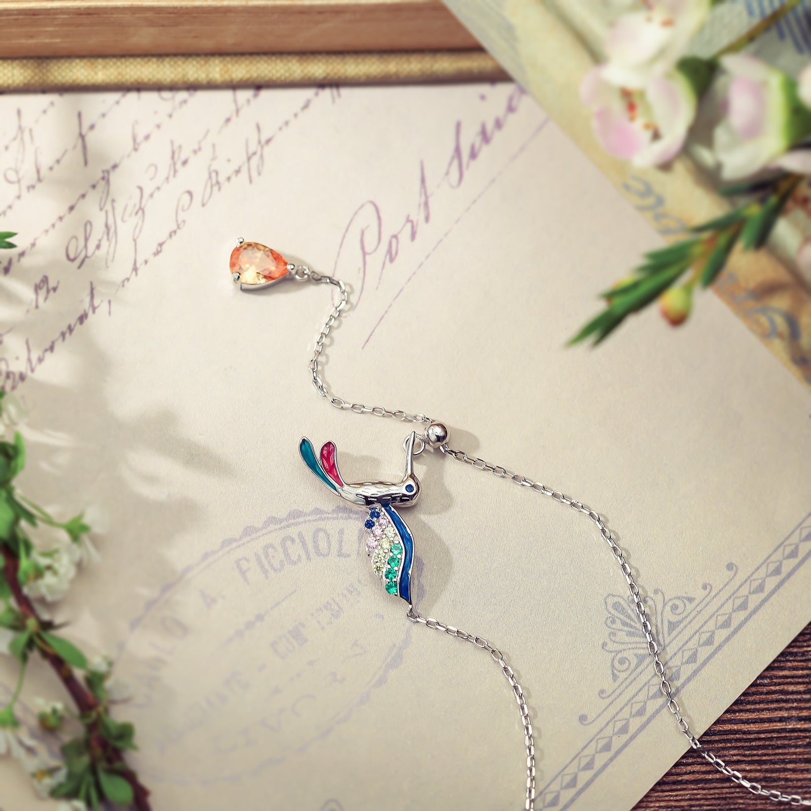 Behold the Silver Hummingbird Necklace, a captivating symbol of grace and freedom. The pendant, intricately designed in radiant silver, perfectly captures the delicate essence of a hummingbird in mid-flight. Add a touch of elegance to your style with this timeless accessory that embodies the enchanting spirit of the hummingbird—nature's symbol of perpetual motion and beauty.