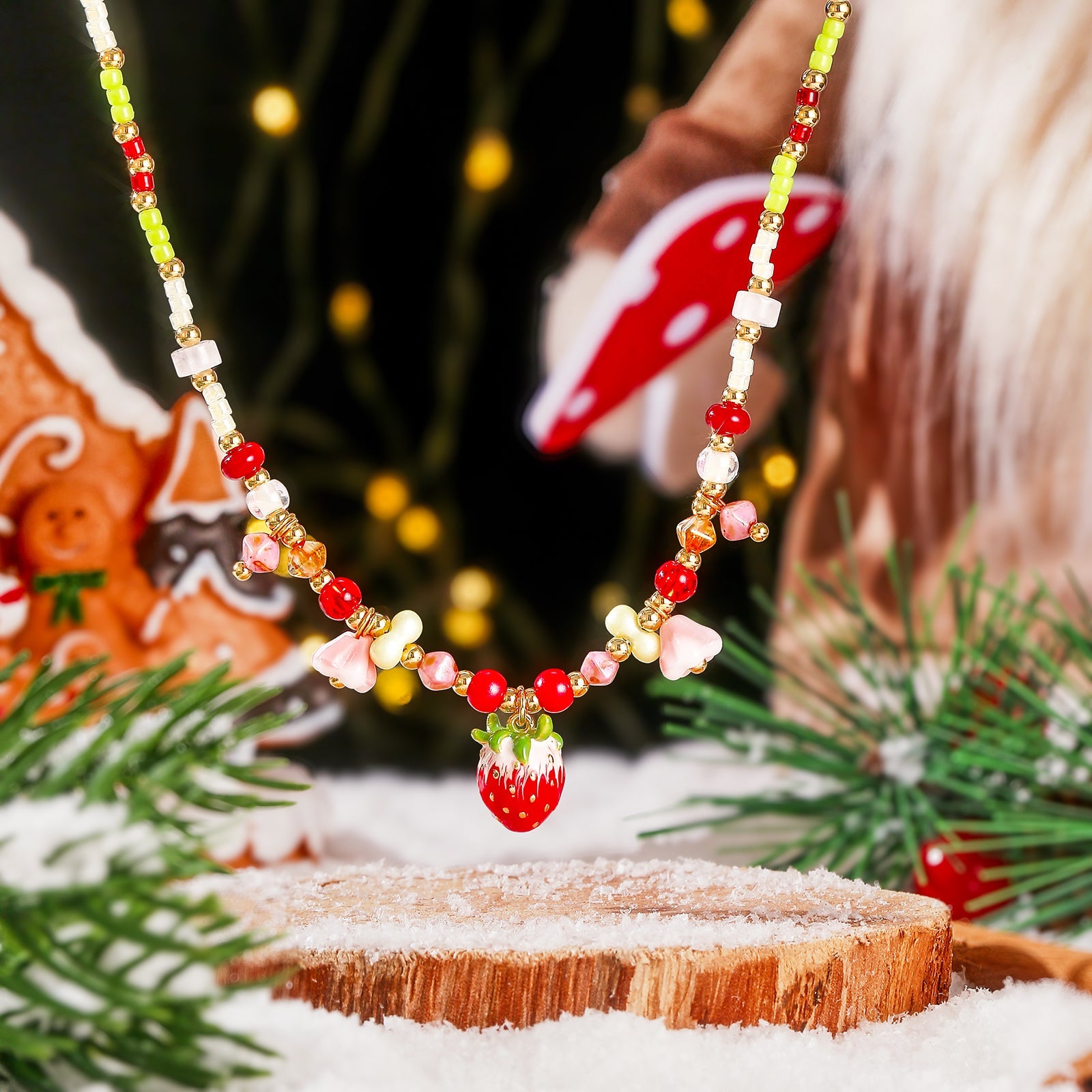 Sweetness and delicacy come together in this Czech Bead Strawberry Charm Necklace, featuring an ivory strand accented with vibrant Czech beads in green, red, and pink for a lively, playful look. The lifelike Strawberry Charm Necklace showcases a bright red strawberry with fresh green leaves, as if carrying the scent of summer, while tiny flower-shaped beads add a romantic touch. Handcrafted with colorful Czech beads and a detailed Strawberry Necklace pendant, it is lightweight and comfortable to wear. Pair it with a simple top to brighten your everyday outfit, wear it on a date for a sweet and gentle vibe, or bring it to a girls’ gathering or summer party to stand out and show your unique charm. 👉 Shop More Fruit Jewelry.