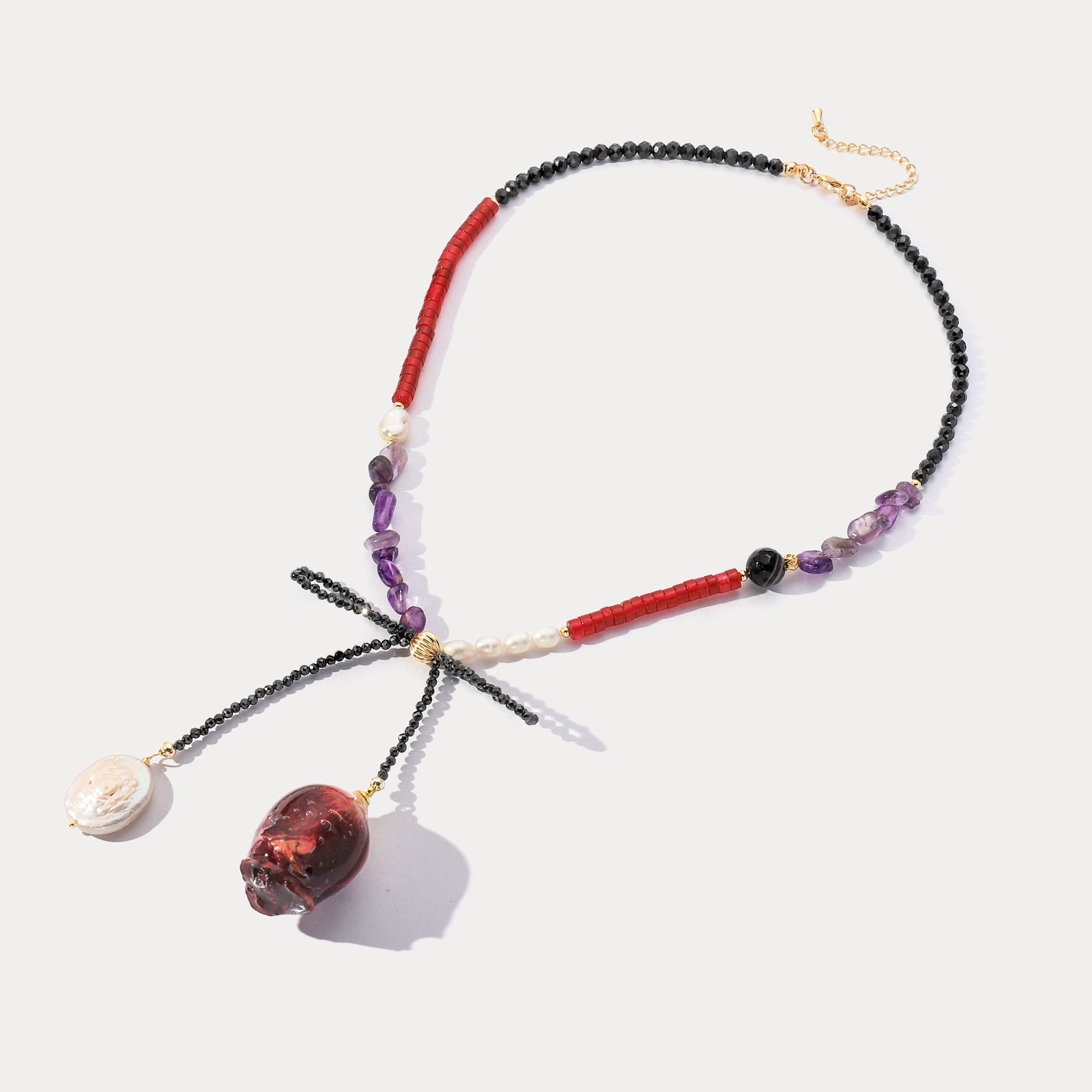 The Dried Rose Beaded Necklace cleverly combines vibrant red, purple, black, and other beads with a distinctive bow design. This unique combination brings an artistic and personal vibe to your look, making the dried flower necklace stand out whether you’re attending a special occasion like an art exhibition or just dressing up for a casual day out. As a thoughtful keepsake gift or a treat for yourself to add a striking touch to your outfit, it’s truly worth adding to your collection.
