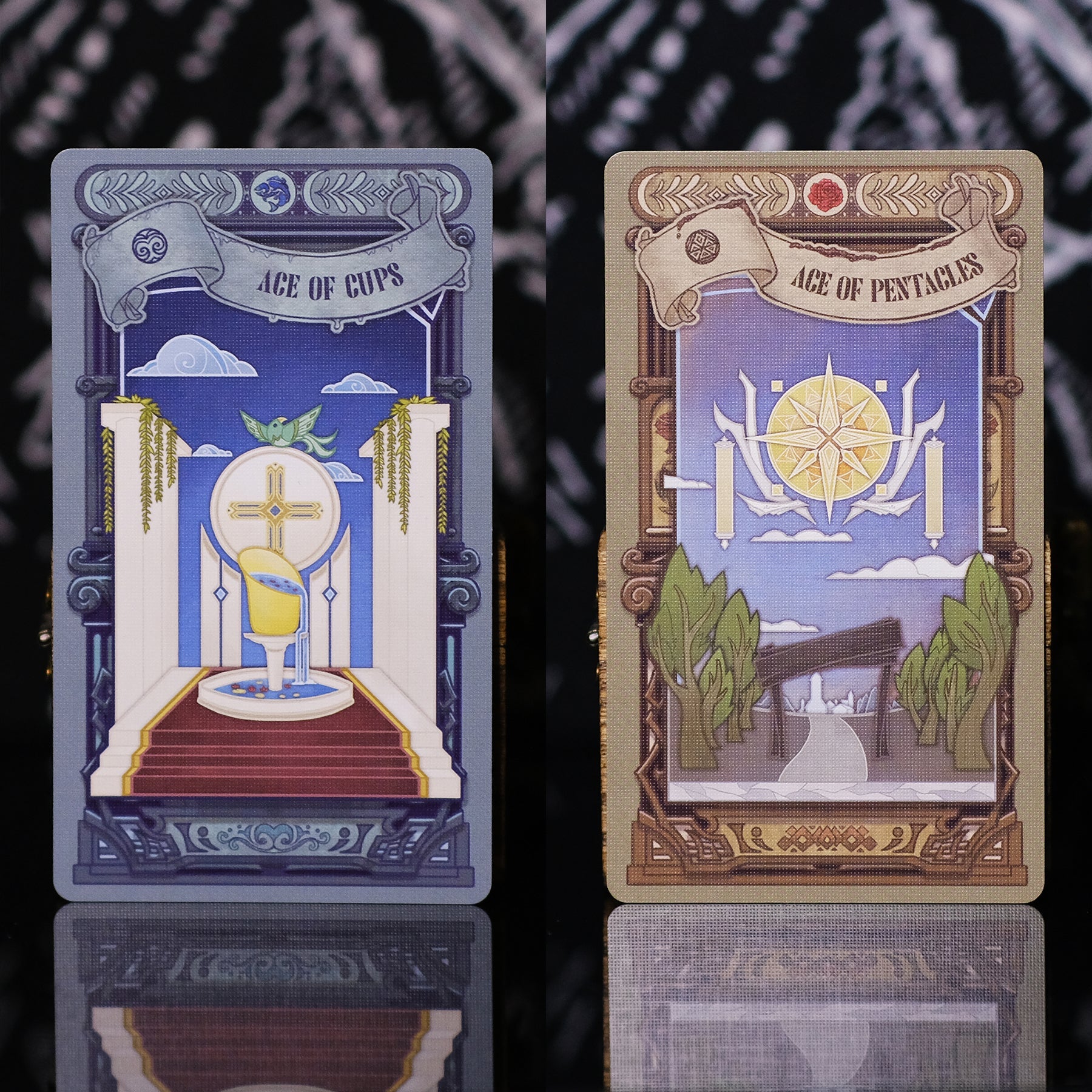 西ヨーロッパのステンドグラス画やケルト美術に見られる要素に、ヴィンテージの装飾模様や天体のシンボルを融合させたデザインは、時代を超越した荘厳な佇まいを醸し出し、優美さ、威厳、そして神秘性を物語っています。私たちは、あなたを古き良き時代へと誘い、宇宙の秩序、エネルギーの循環、時の流れ、そして母なる自然の偉大さについて深く考えさせてくれることを願っています。