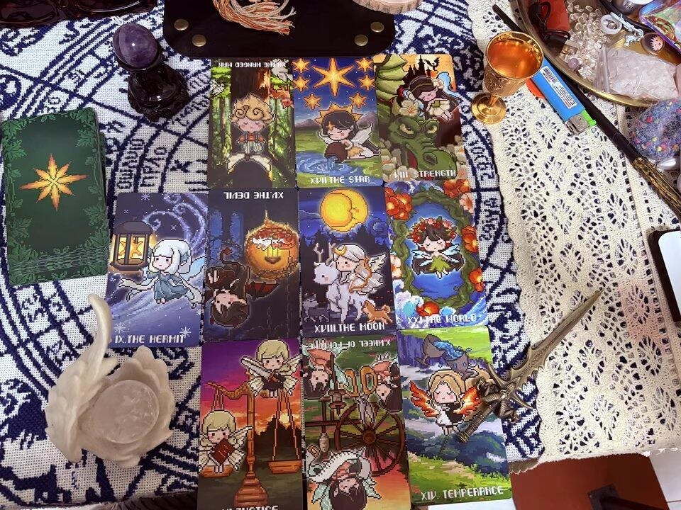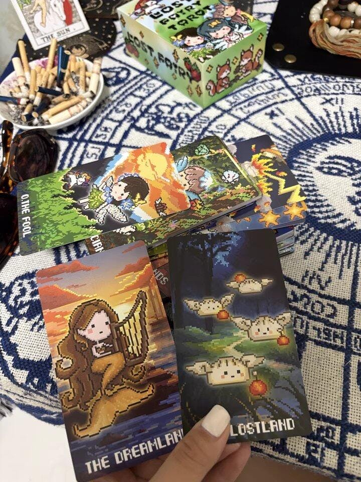 このノスタルジックなデッキは、おとぎ話の魅力が光るピクセルアートスタイルが特徴です。妖精たちが住む魔法の森を彷彿とさせる各カードには、幻想的な情景、小さなピクセルの精霊、そして神秘的な風景が描かれています。柔らかく輝く色合いと繊細なディテールで描かれたアートワークは、遊び心と深みを絶妙に調和させ、無邪気さと魔法が織りなす魅惑的な融合を表現しています。