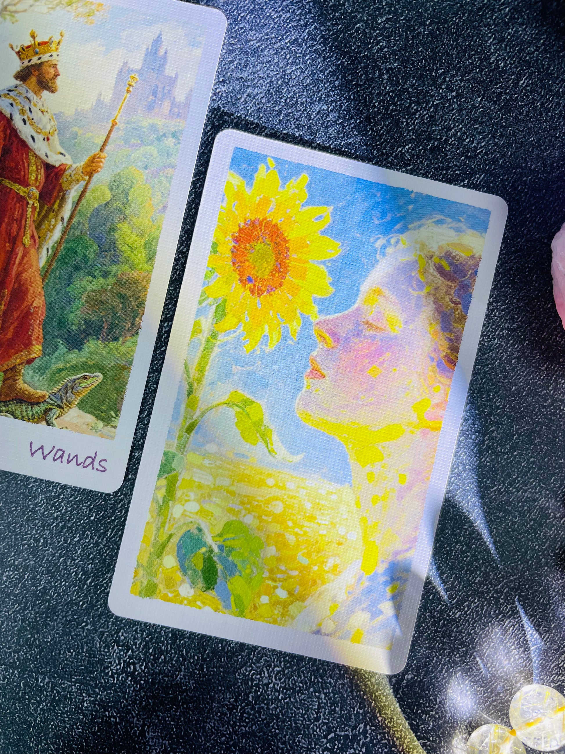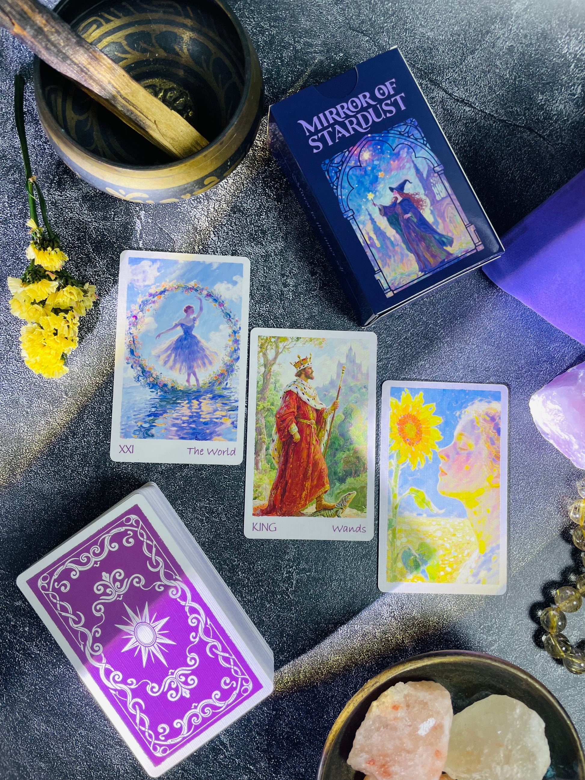 pistachio 油絵のようなタッチと小さな手にぴったりのサイズに惹かれて購入しました。イラストはライダー・ウェイト版に近いので、初心者にも分かりやすいです。以前はコート紙版を購入していましたが、今回アップグレードされたブラックハート紙版は本当に素晴らしく、期待を裏切りません。カードを押す動作は全体的に滑らかで滑らかで、カード自体もかなり丈夫なので、長く使えると思います。