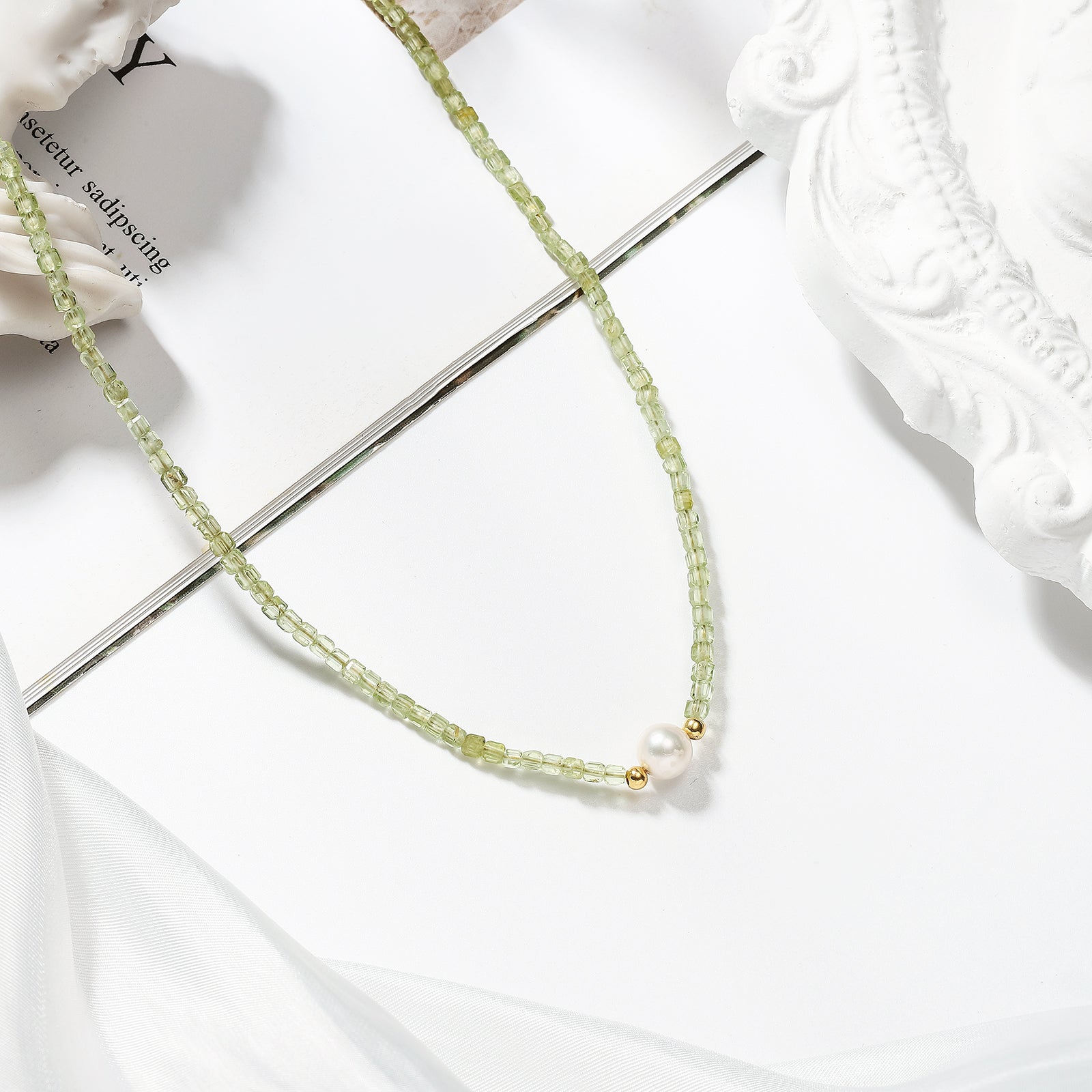 Embrace the timeless elegance of this Pearl Seed Beads Necklace. Crafted with olivine beads to lend an understated sophistication, this timeless piece is perfect for elevating any ensemble. An exclusive gift for a loved one, or a luxurious addition to your own collection.