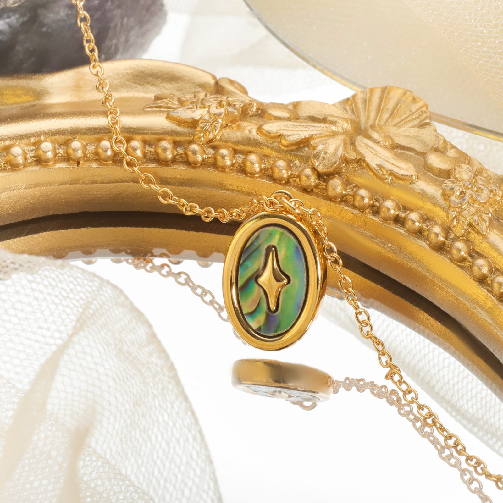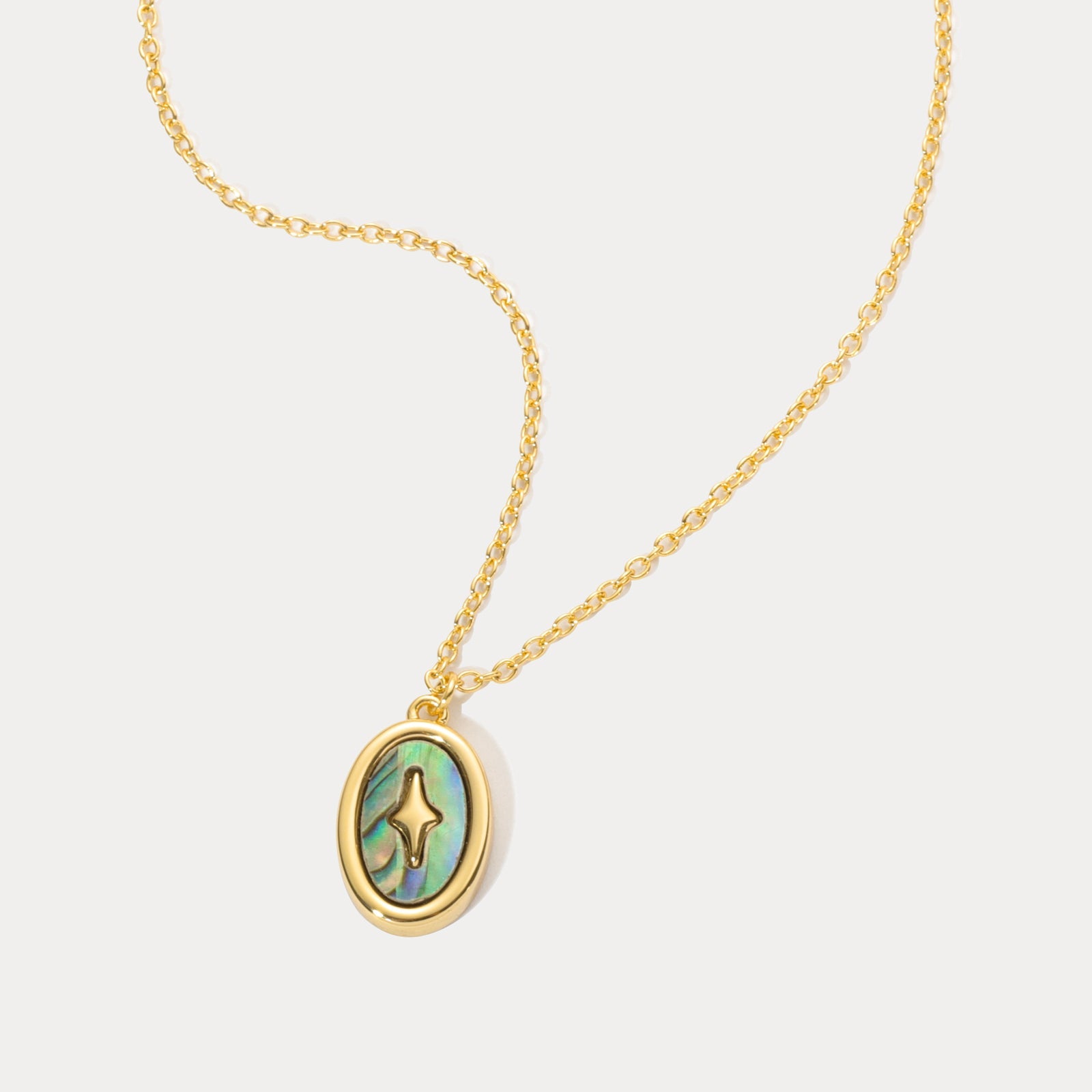 The Abalone Shell Pendant Necklace, part of our Everyday Wear Collection, offers a perfect harmony between nature and elegance. The iridescent hues of the abalone shell shimmer with a spectrum of colors, making each piece uniquely captivating. Encased in 18K gold-plated brass, this pendant is both versatile and timeless, designed to complement any outfit, whether for casual moments or special occasions. Its organic beauty brings a touch of the ocean's mystique to your daily life, making it a cherished accessory for those who appreciate the natural wonders of the world.