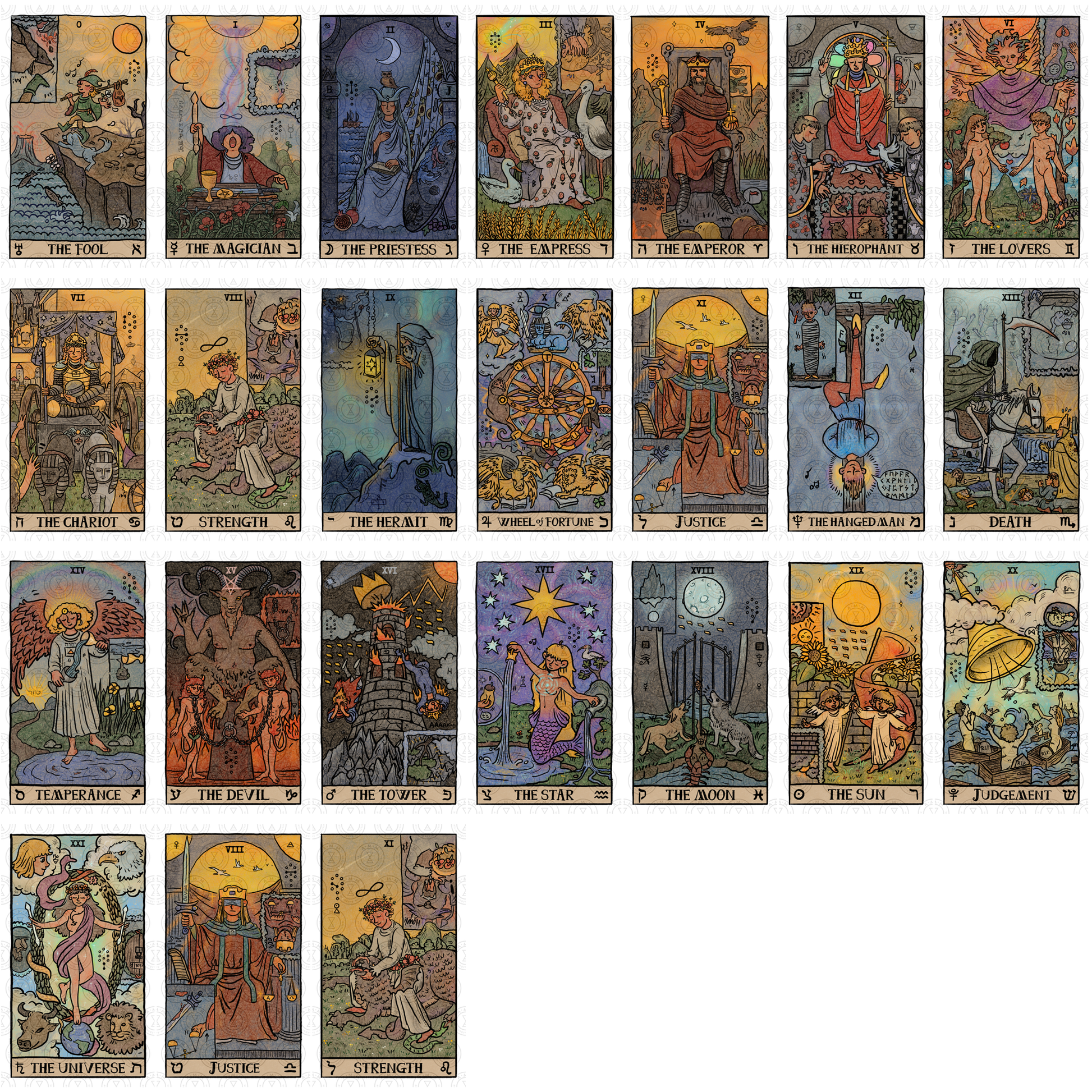 - Includes: 22 Major Arcana + 56 Minor Arcana + 'VIII. Justice' + 'XI. Strength'