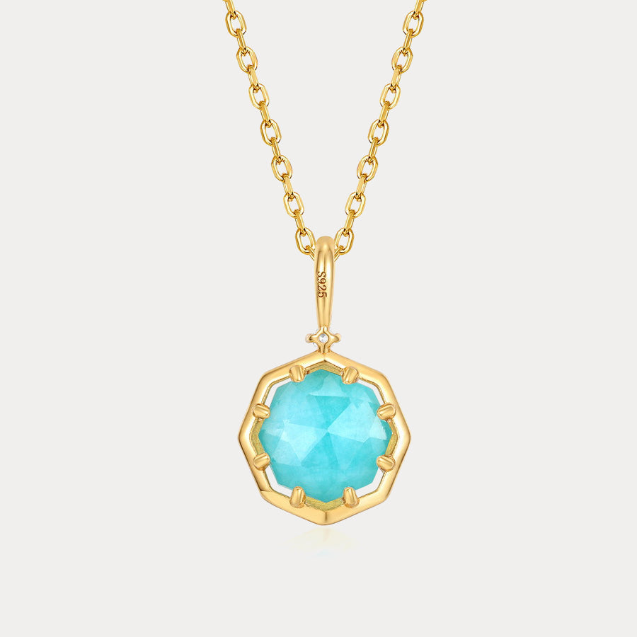 A breath of calm carried by the sea, this Amazonite Pendant Necklace glows in soft shades of turquoise and misty green, like sunlight dancing on gentle waves. The smooth amazonite stone rests gracefully on a polished necklace, bringing a sense of peace and balance to your day. Crafted in fine gemstone jewelry, it reflects the quiet strength of nature and the beauty of stillness. This dainty necklace makes a thoughtful gift for her, a piece of natural stone jewelry that carries the soothing spirit of ocean breeze and open skies.