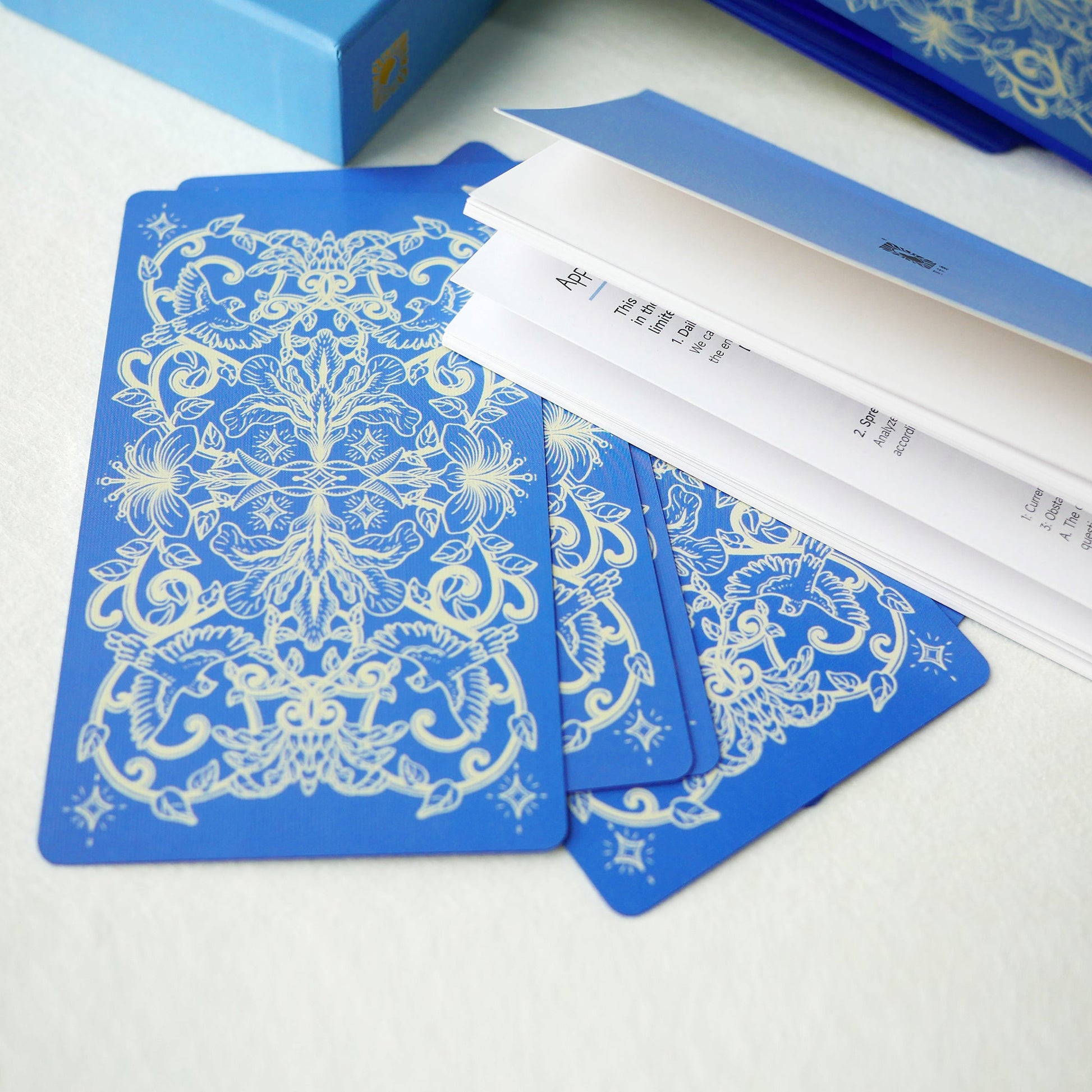 This deck borrows from iconic Chinese artistic motifs and various symbolic, exotic, and fantastical elements in Chinese culture. Landing on the intersection of oriental aesthetics and a western divination practice, it reflects a romanticized perception of ancient China, channeling timeless wisdom in a humble fashion.