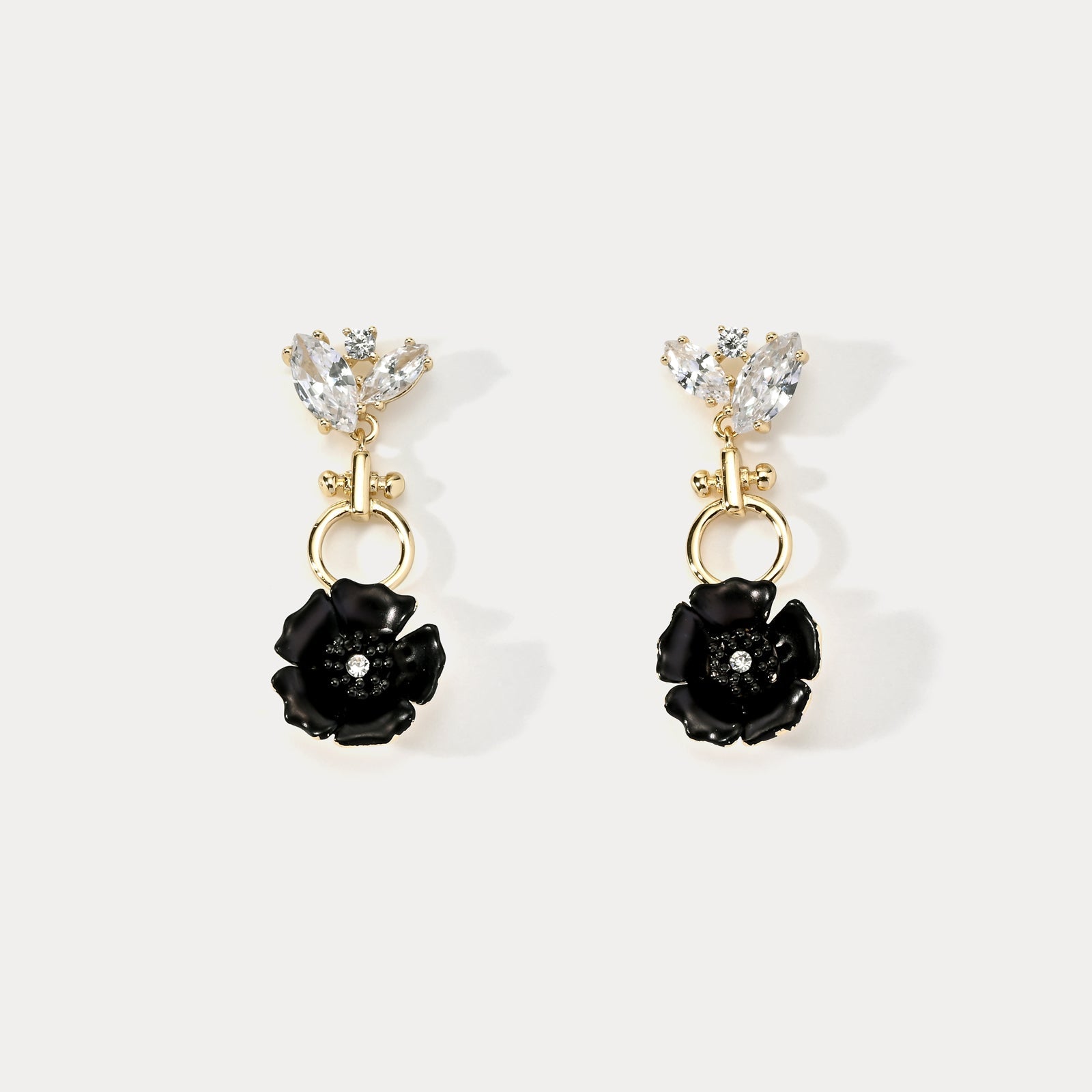 Experience elegance and style with our Black Flower Earrings! The intricate design and rich color of these earrings will instantly elevate any outfit. Perfect for any occasion, these earrings are a must-have for every jewelry lover. Add them to your collection today and make a statement with every wear!