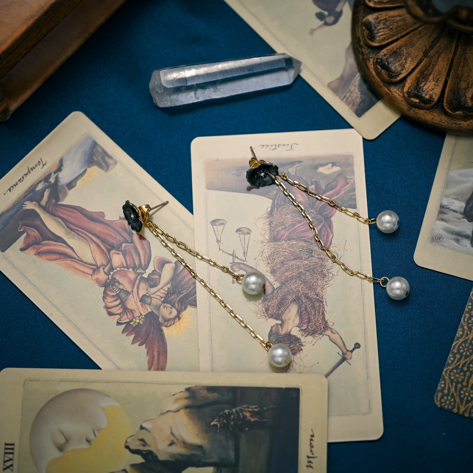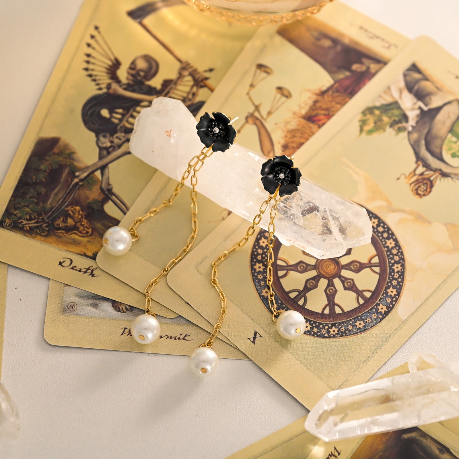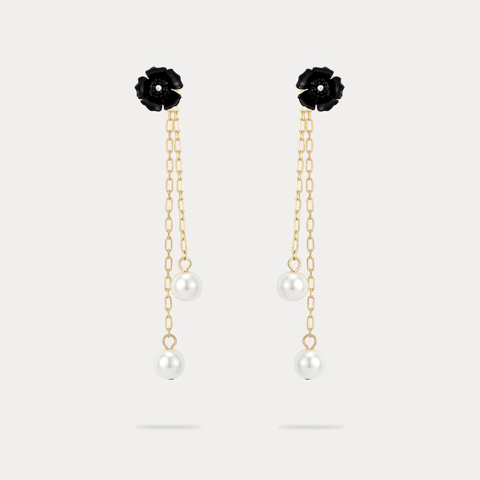 Elevate your style with our Black Flower Pearl Earrings. The intricate flower design adds a touch of elegance, while the black pearls exude sophistication. Be the talk of the town with these stunning earrings, perfect for any occasion.