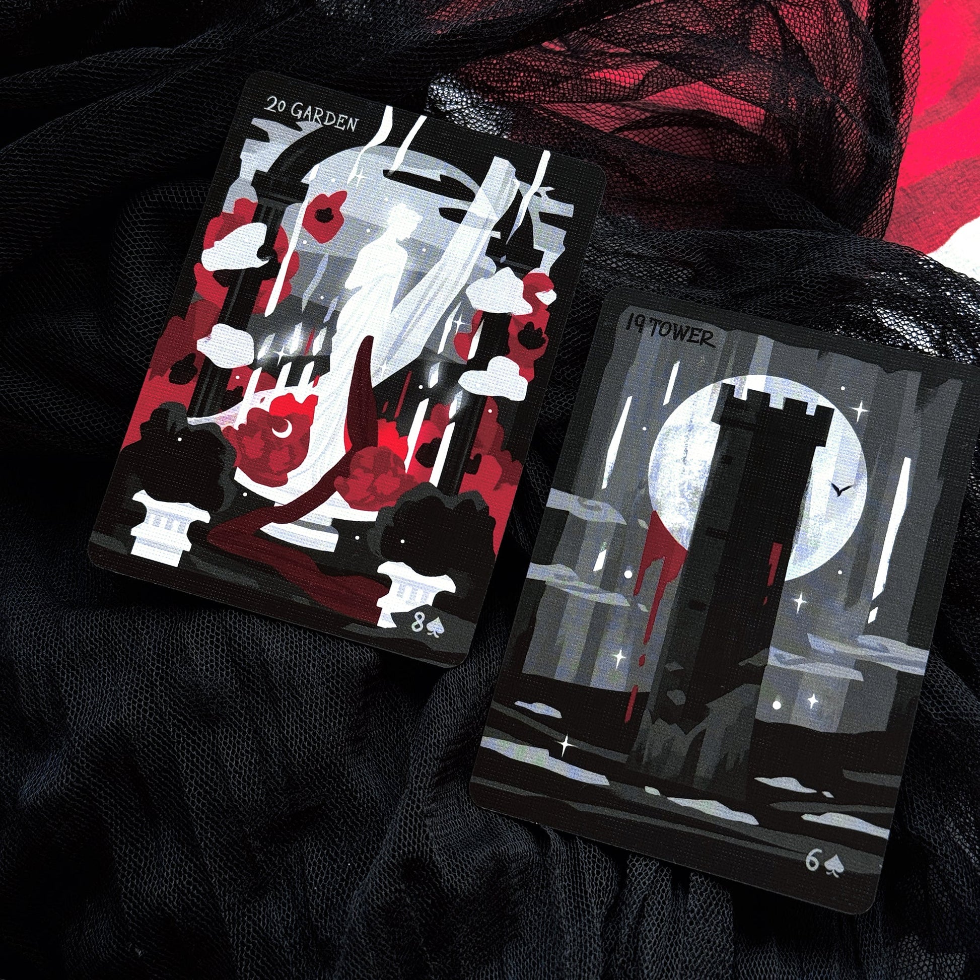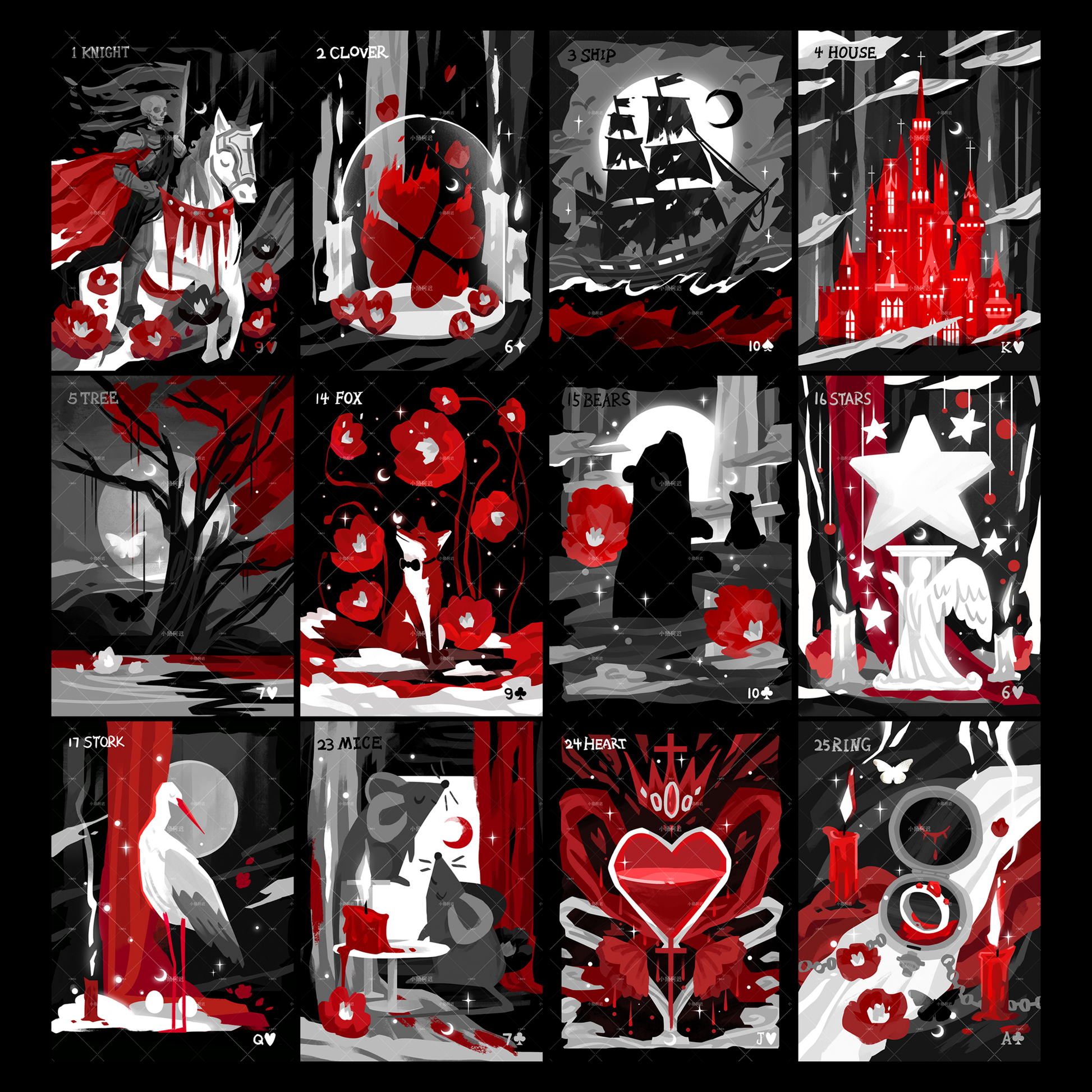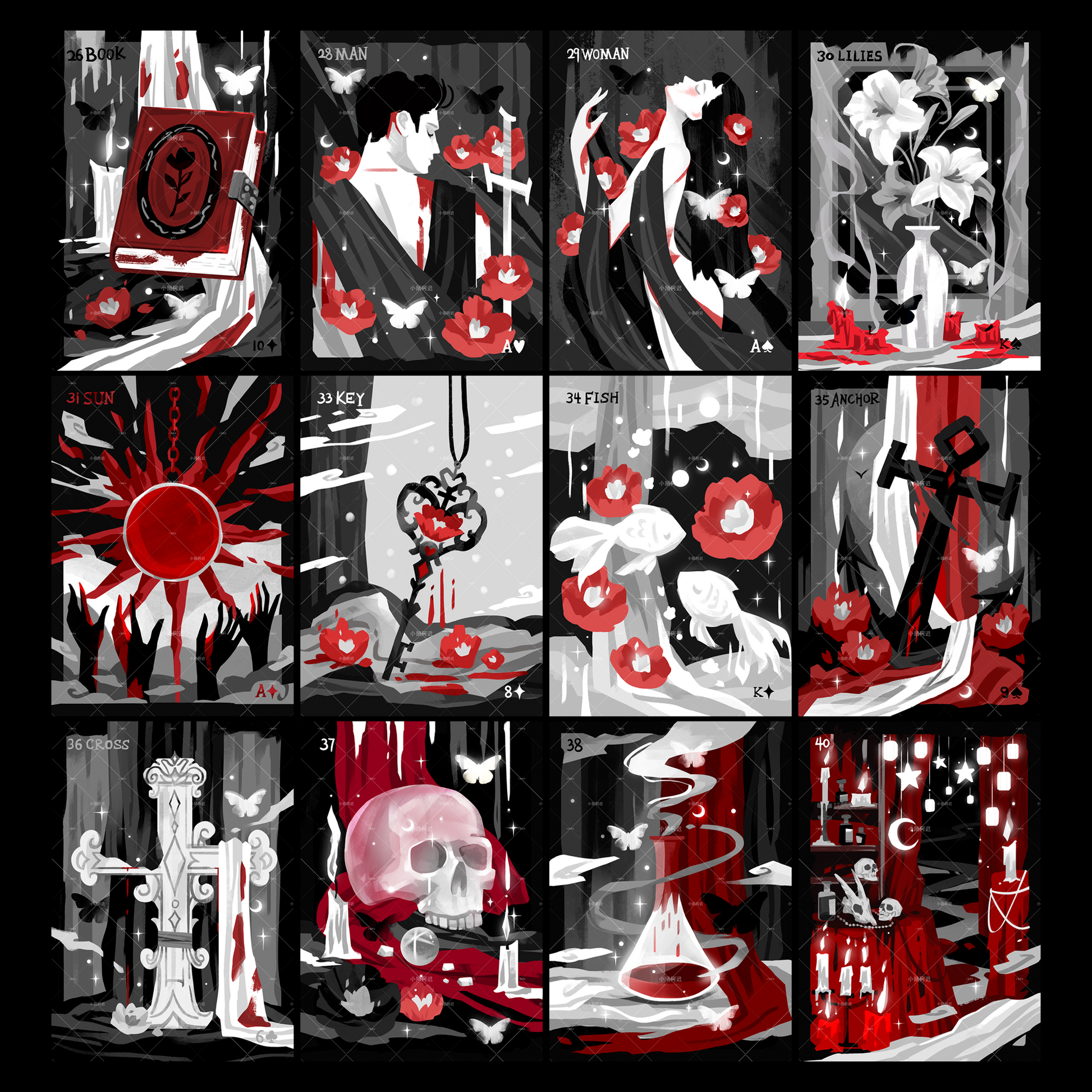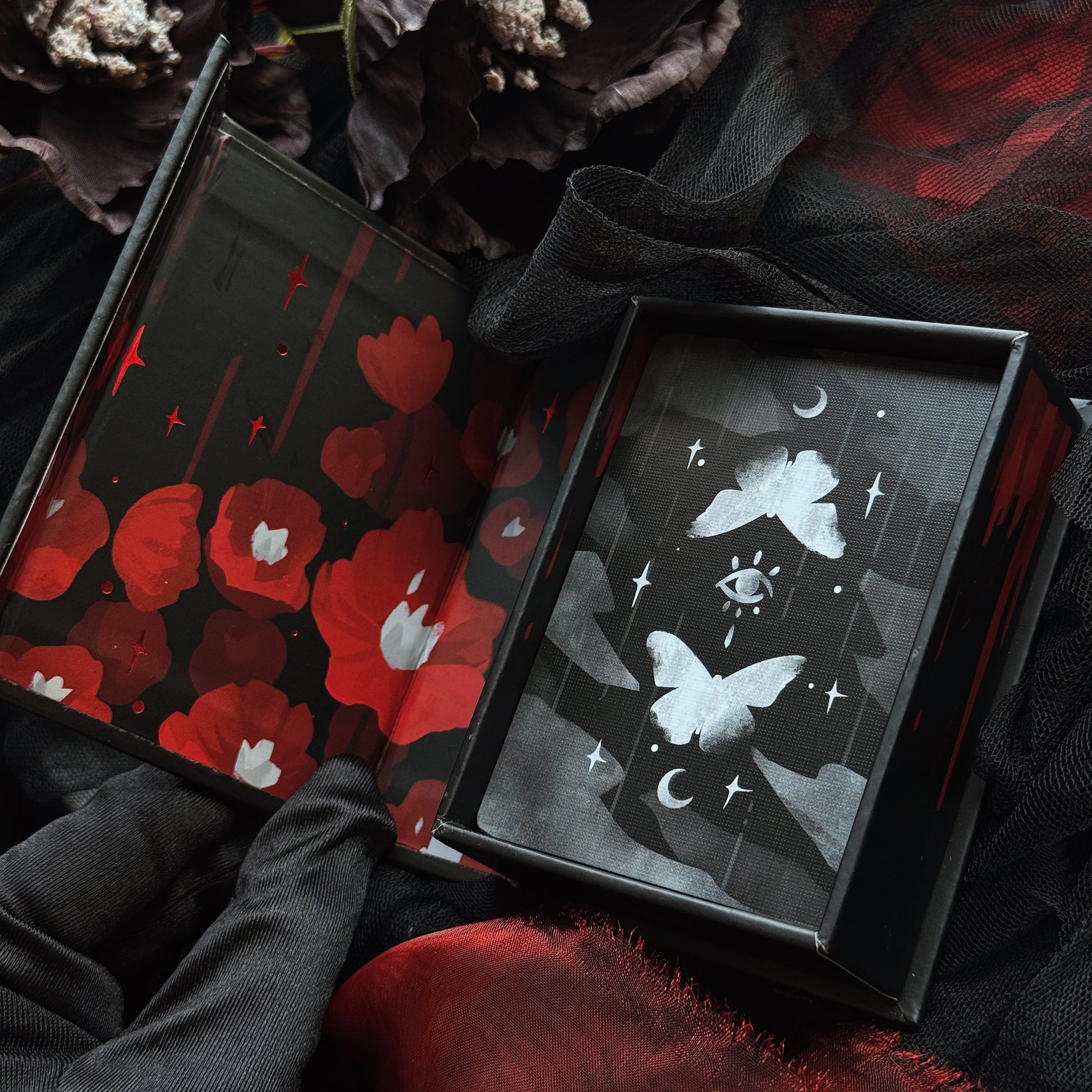 For witches and wizards who believe in resurgence, this beginner-friendly Lenormand deck includes 36 basic cards and 6 optional cards compatible with the Rana George system. It's inspired by medieval Gothic aesthetics and the haunting beauty of blood amber and red poppies – symbols of mystery and renewal.