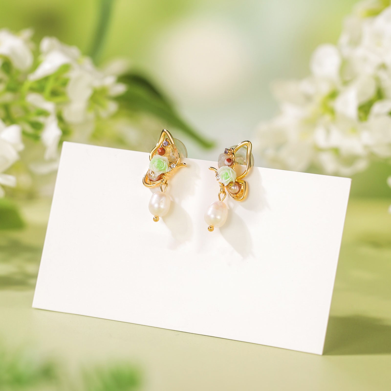 Transform your look with these enchanting Butterfly and Green Rose Earrings. The delicate butterfly design flutters gracefully among the vibrant green roses, creating a perfect harmony of nature’s beauty. The fresh, lively colors capture the essence of spring, while the intricate detailing adds a touch of elegance. An absolute must-have, these earrings bring nature’s beauty to life!