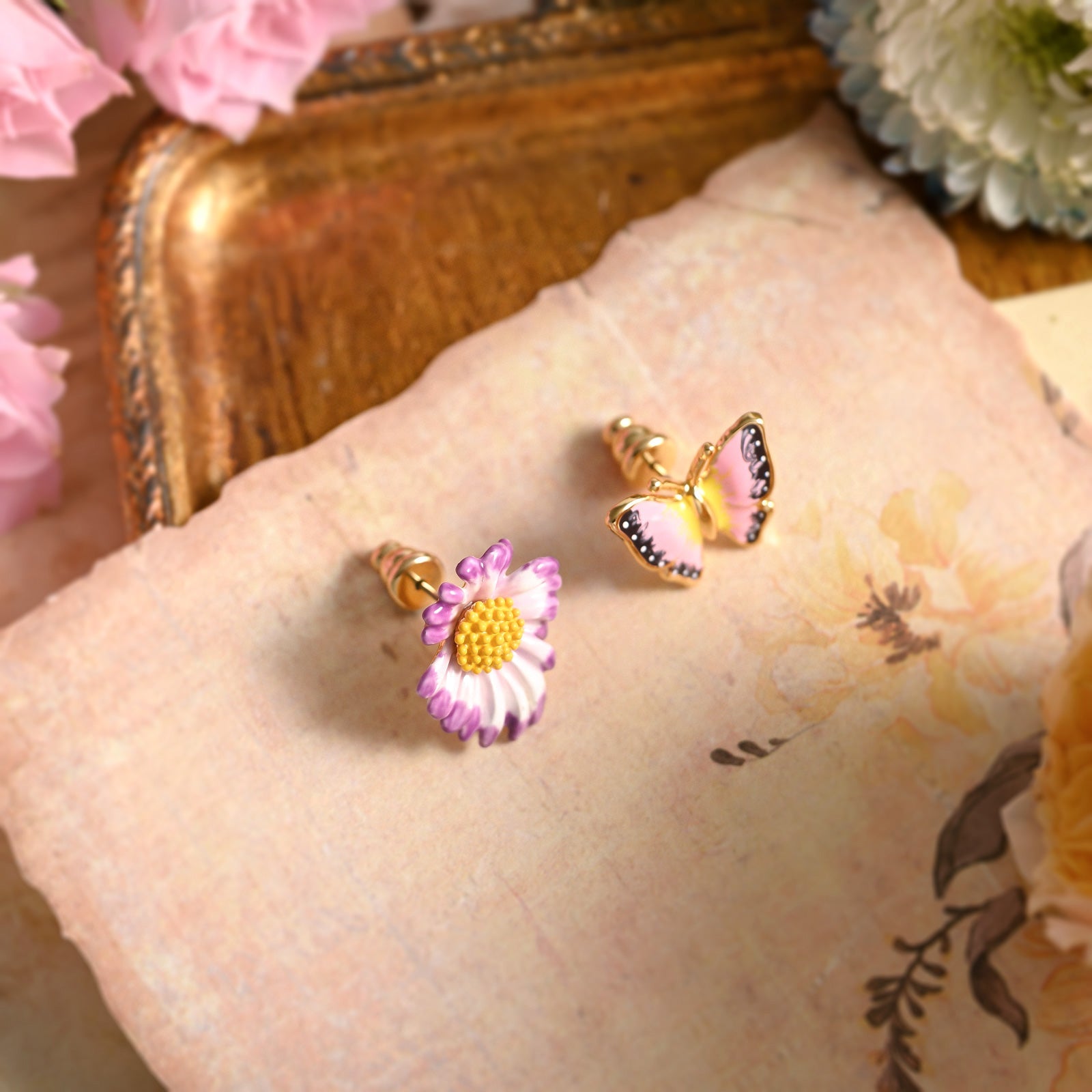 Daisy Butterfly Stud Earrings