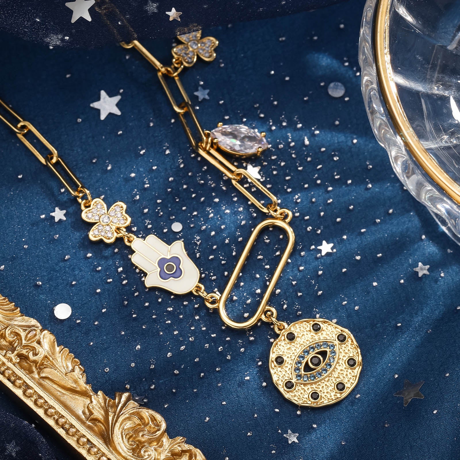• Material: Silver-plated or 18K gold-plated 316L stainless steel (mirrors moon’s reflection)