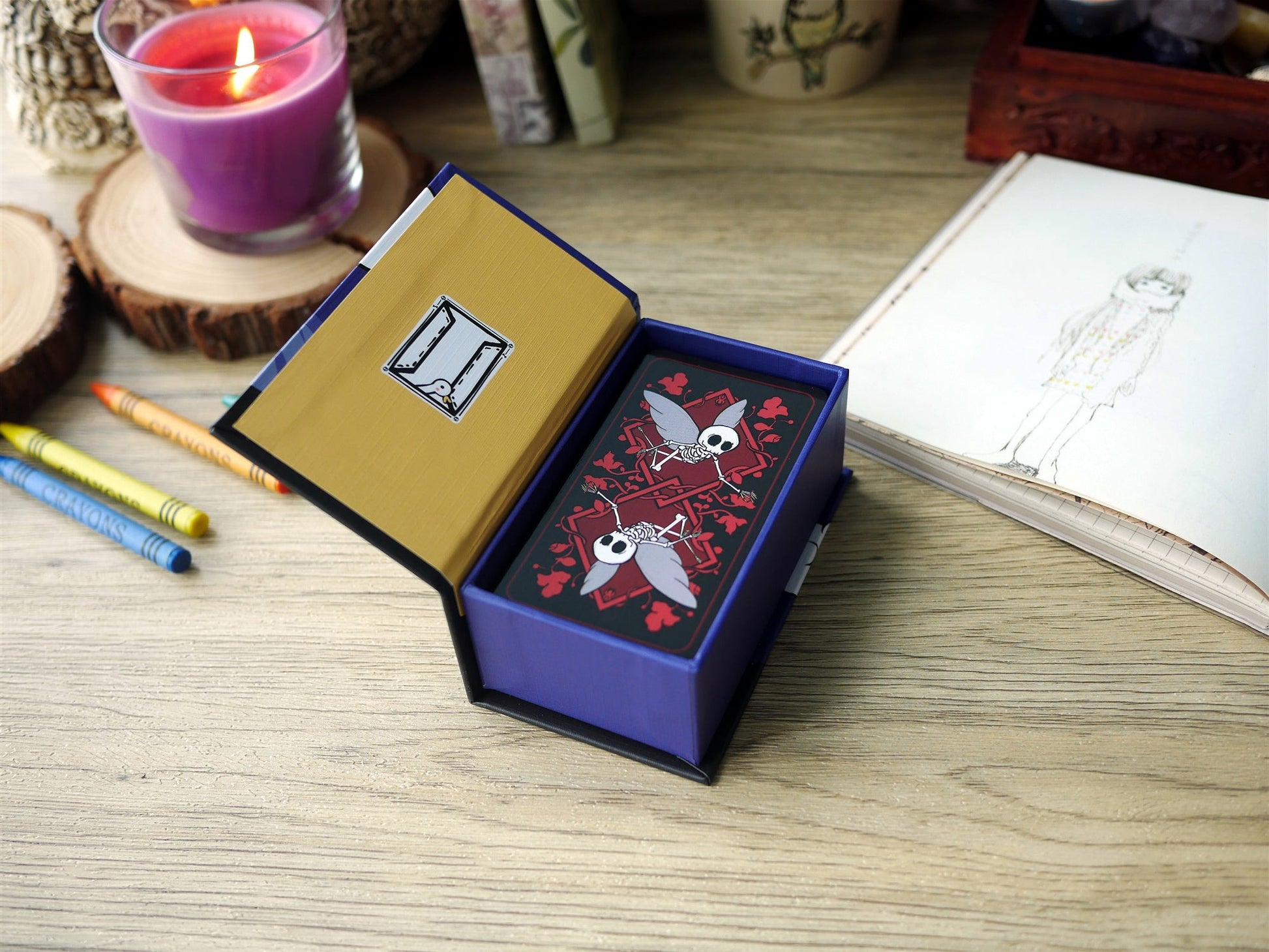 A refreshing twist on a divine classic, this creepy-cute deck takes you on a journey like no other, where skeleton becomes a metaphor for the truth beneath the veneer of life's mortality. Have fun flipping through 79 whimsical cartoon drawings as you explore the daily existence of a characterful skeleton protagonist. Perhaps you will find a relatable mirror reflecting the joys and challenges of being a human.