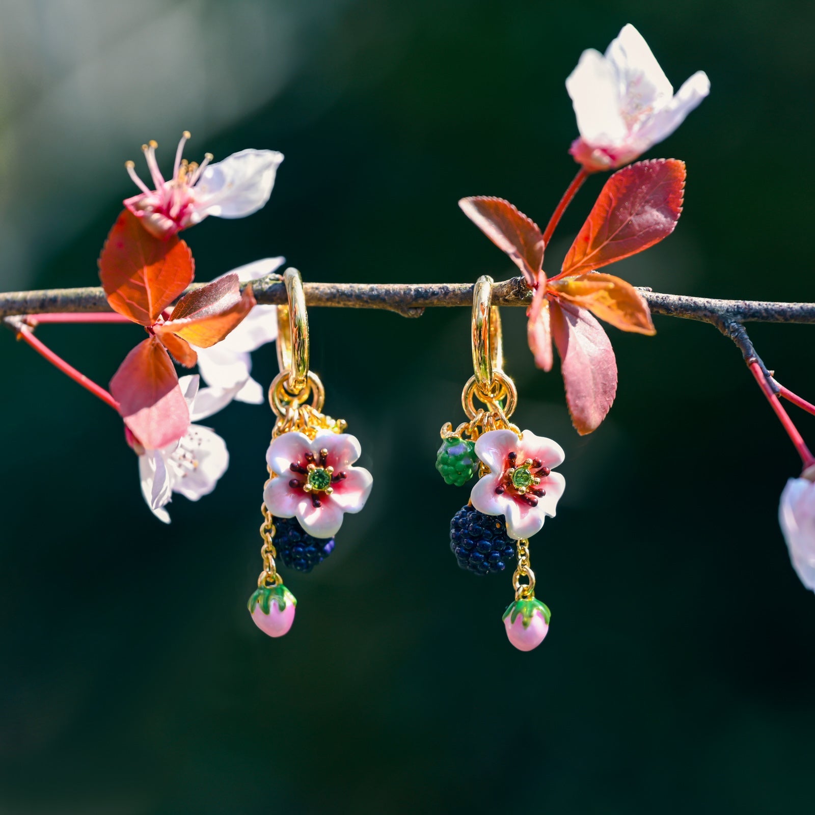 Let these elegant Blackberry Flower Enamel Earrings add a touch of chic to your attire! Beautifully designed using high-quality enamel, these earrings feature delicate blackberry flowers that will elevate any look. Perfect for any occasion, these earrings are a must-have for any fashion-forward individual. Order now and make a statement!