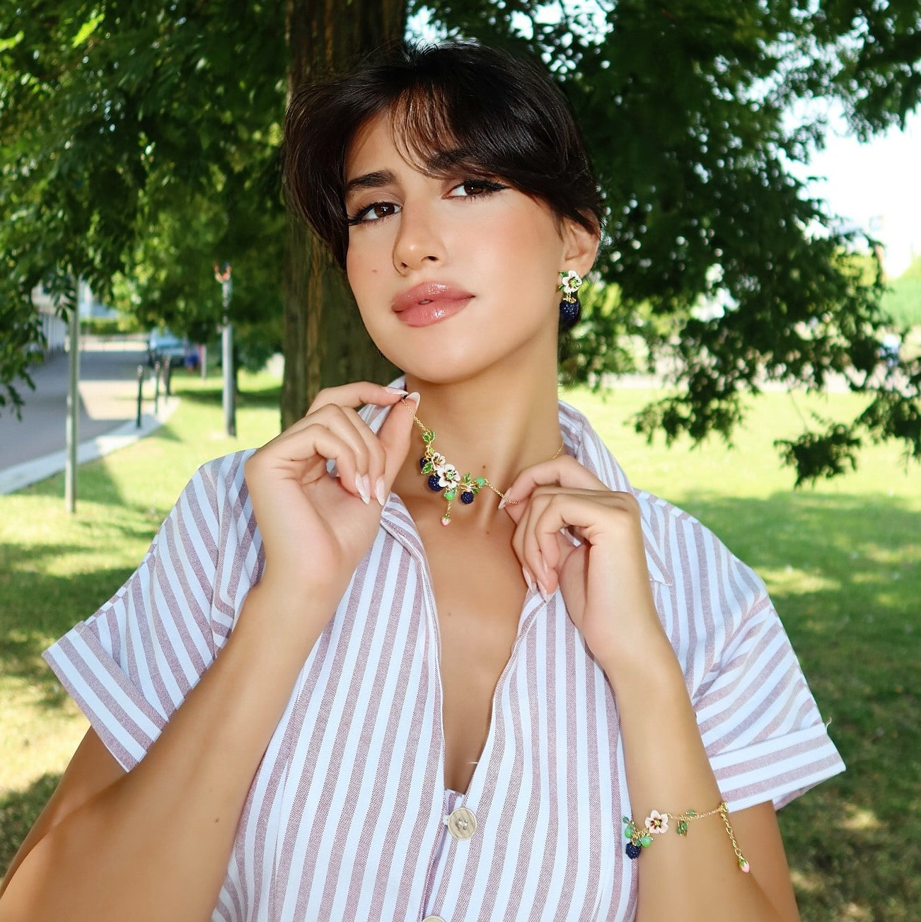 Inspire your look with our Blackberry Flower Necklace! This stunning design features a delicate blackberry flower that adds a touch of natural beauty to any outfit. Elevate your style and make a statement with this unique necklace. Perfect for any occasion.