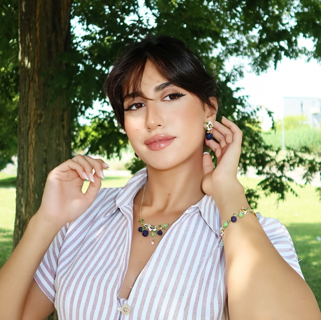 Crafted with a delicate blackberry flower design, these earrings add a touch of nature to any outfit. Made with attention to detail, these earrings are perfect for those who appreciate the beauty of nature. Elevate your style and show off your love for nature with these stunning Blackberry Flower Earrings.