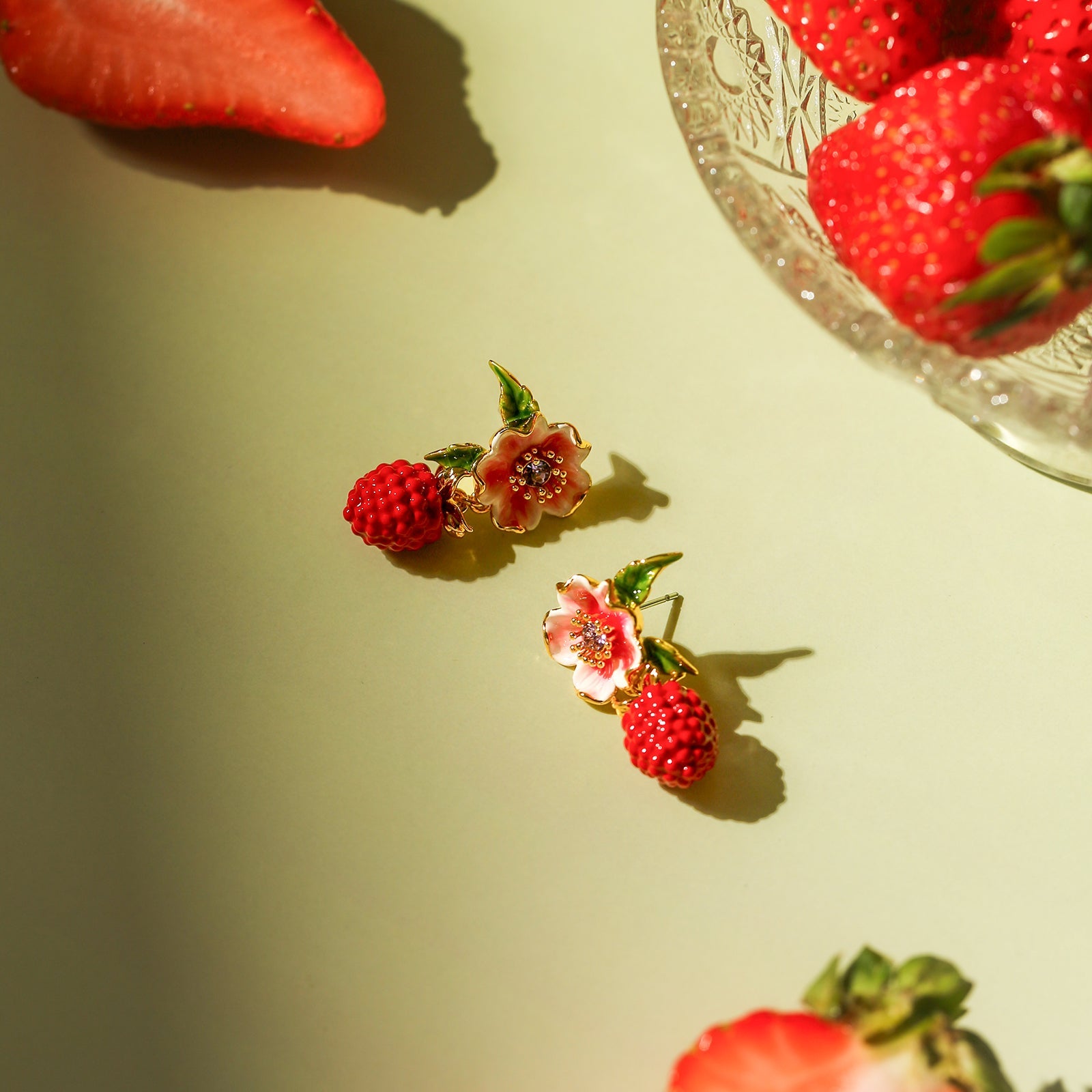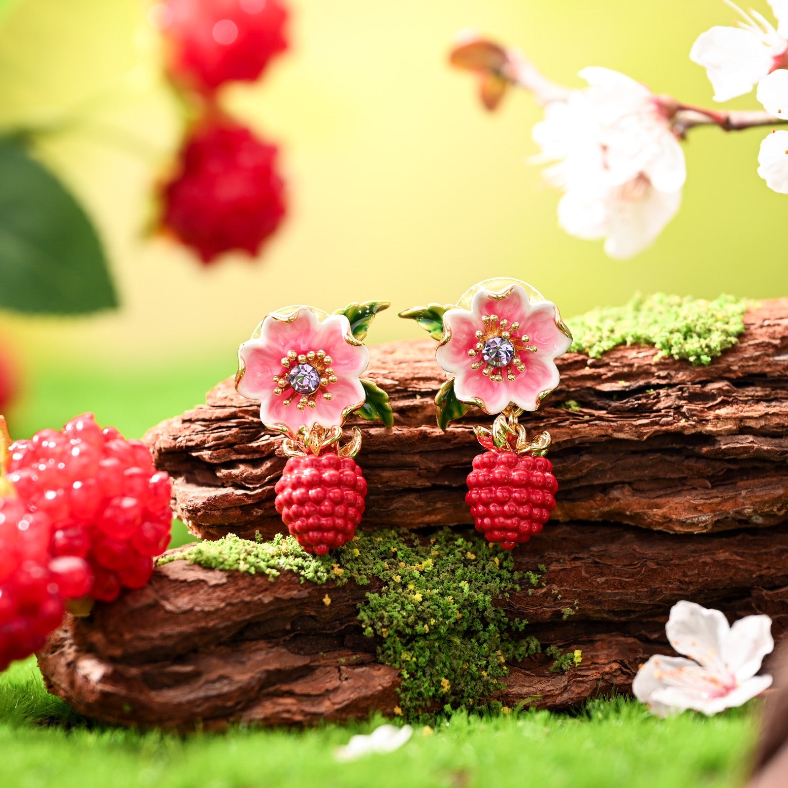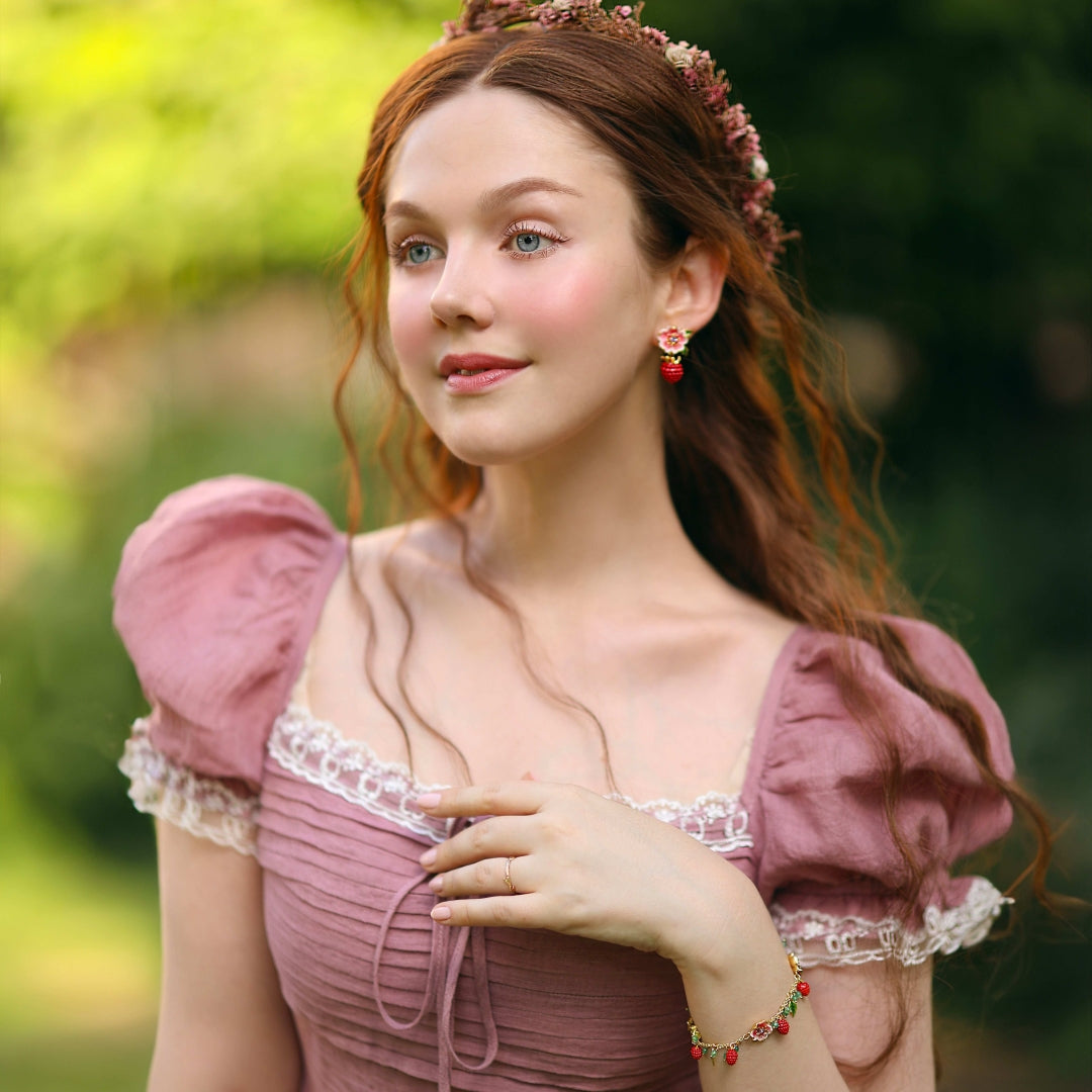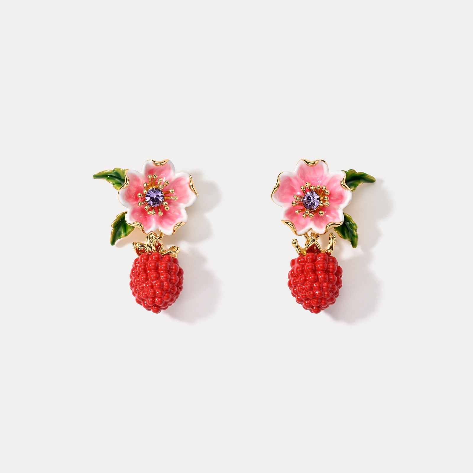 Raspberry Flower Enamel Earrings