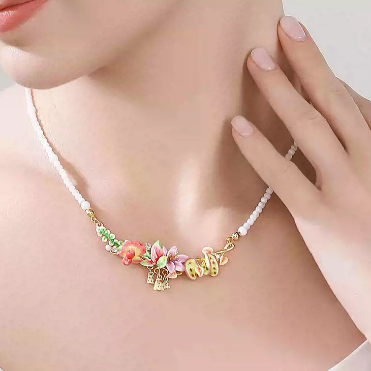 • Materials: 18K Gold on Brass, Enamel, Beads, Cubic Zirconia