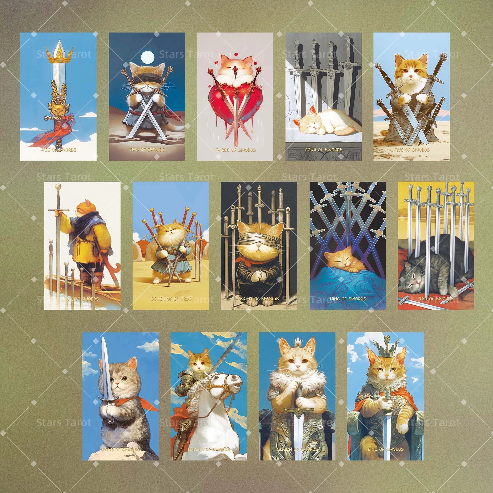 Bring joy to every reading with this lovable deck! From majestic kitties dressed as royalty to furry balls snoozing under the stars, every detail radiates lighthearted fun. Whether you're seeking daily guidance or just a smile, these chubby cats will steal your heart – and maybe your seat on the tarot table!