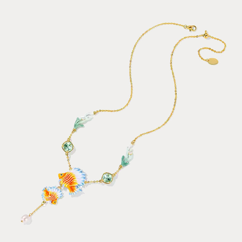 Experience the beauty of the ocean with our Fish Pendant Necklace! This stunning necklace features two intricate fish pendants that will add a touch of elegance to any outfit. Perfect for the ocean lover or anyone looking to make a statement, this necklace is sure to catch everyone's attention.