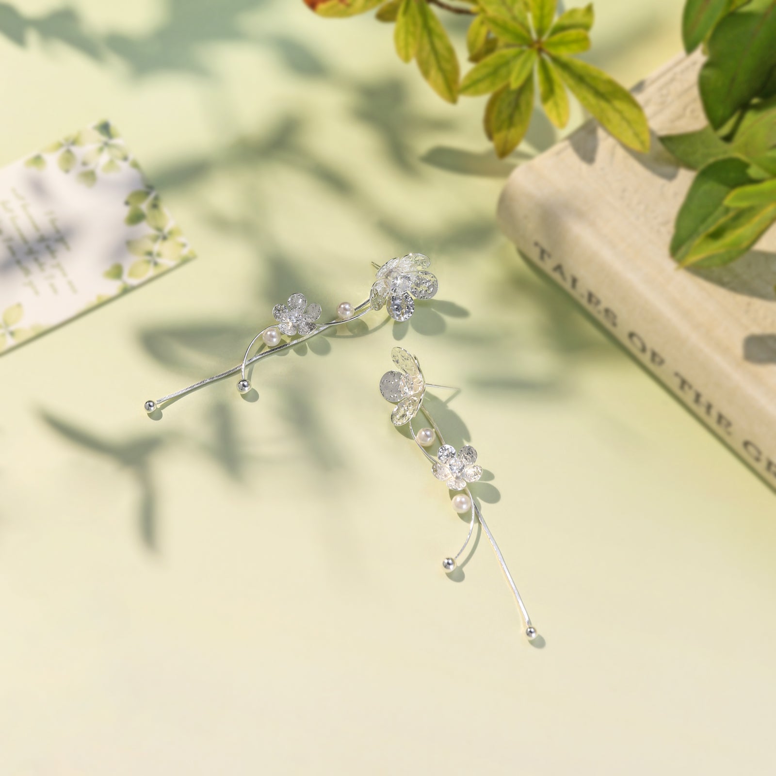 Be captivated by the charm of our Flowers Tassel Earrings. Exquisitely designed, these earrings feature shimmering floral accents paired with lustrous pearls, while cascading tassels bring graceful movement and a refined touch. Whether you seek a gentle and polished look for a date, want to stand out at a party, or hope to add a little elegance to your everyday wear, these Flowers Earrings adapt with ease. Wear them to enhance your style and express your unique fashion sense. With each appearance, these Tassel Earrings add a romantic glow that is entirely your own.