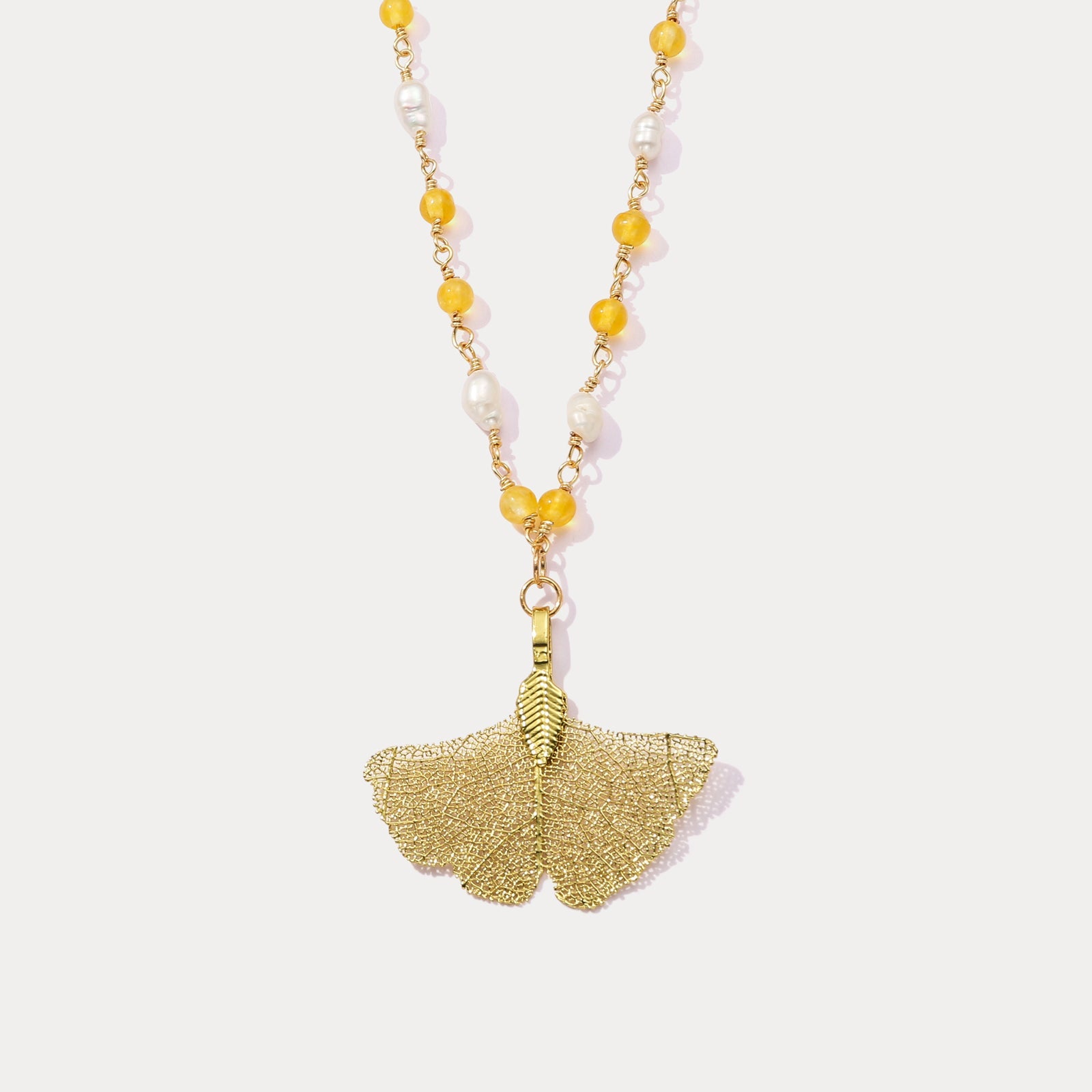Gold Ginkgo Leaf Bead Necklace