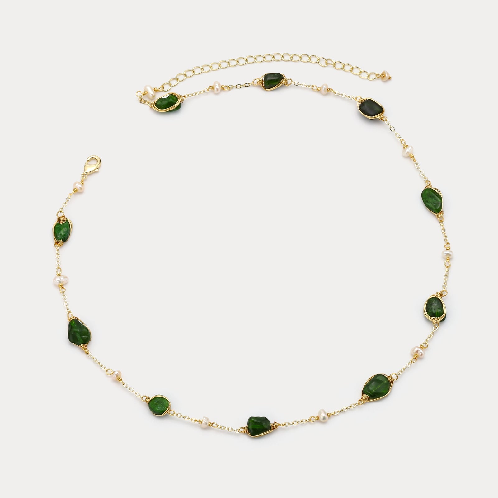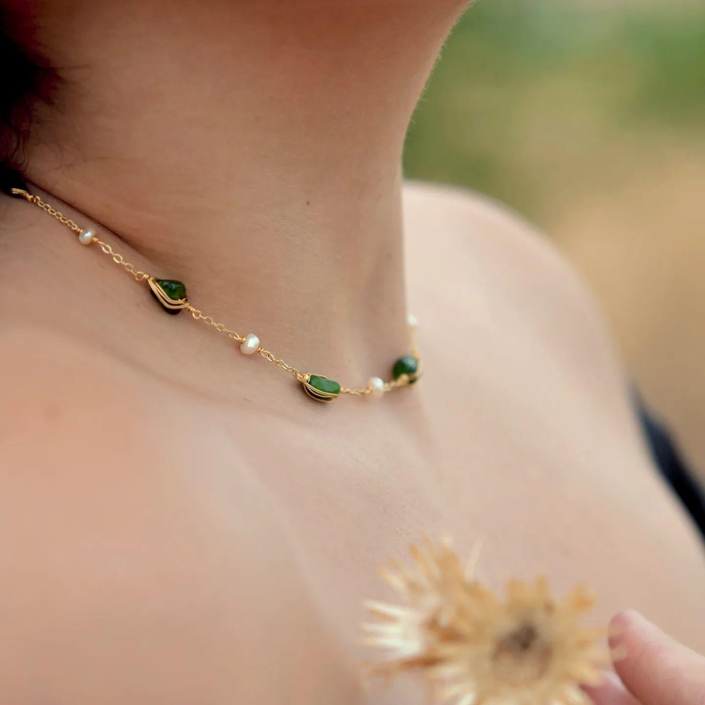 Infuse your style with the transformative power of our Healing Crystal Station Beaded Necklace. This enchanting green moldavite necklace is a harmonious blend of nature and luxury, featuring natural stones known for their restorative properties, and lustrous freshwater pearls that evoke purity and grace. Each bead is meticulously stationed on an 18K Gold-plated brass chain, offering a durable yet elegant foundation. The freshwater pearl necklace invites a sense of balance and rejuvenation, making it the perfect accessory for those seeking a touch of healing in their daily lives. Layer it with other chains or beaded necklaces to create a bespoke, maximalist aesthetic that’s uniquely yours.
