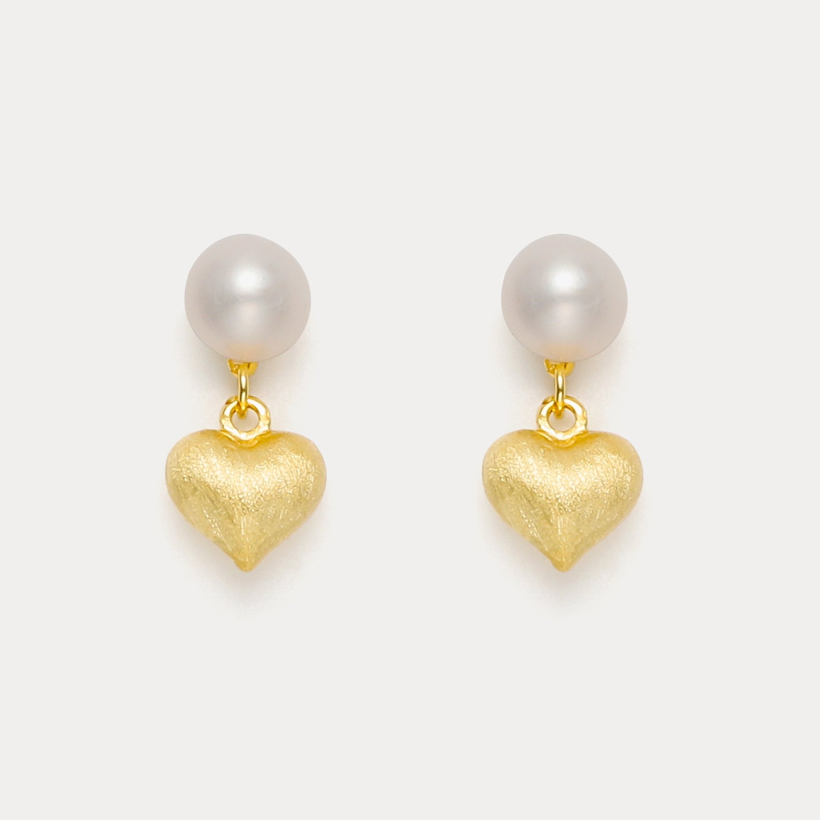 Experience love's essence with our Pearl Heart Earrings. Delicately dangling freshwater pearls grace heart-shaped charms made from 18K gold-plated sterling silver. Symbolizing eternal affection, they capture nature's radiance. Versatile for any occasion, they infuse stylish charm into your ensemble, reminding you to cherish life's moments. Let their grace illuminate your inner warmth, indulging in the timeless allure of pearls as these earrings steal your heart.