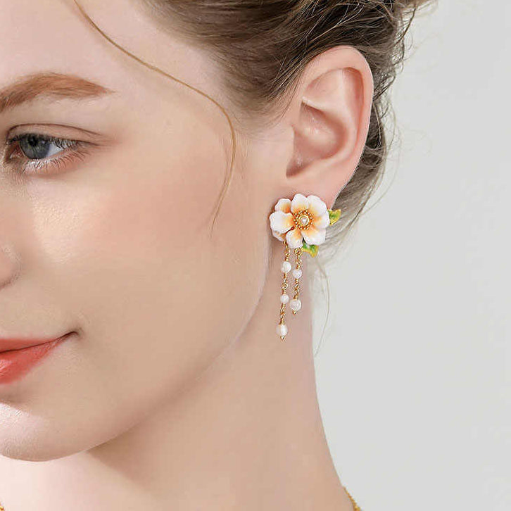 Indulge in the elegance of the Jasmine Earrings. Made with vibrant enamel, these earrings add a touch of sophistication to any outfit. Elevate your style and make a statement with these stunning earrings.