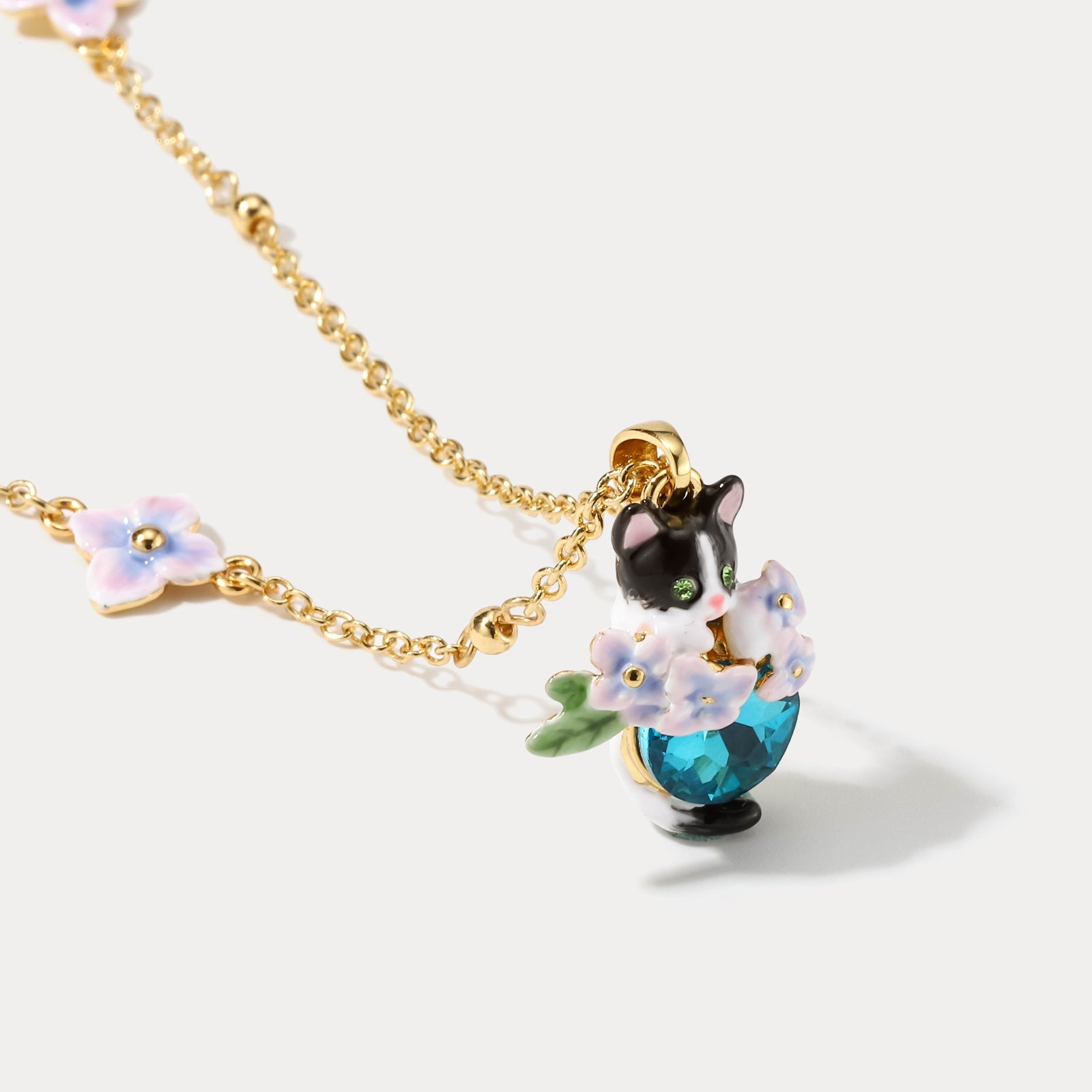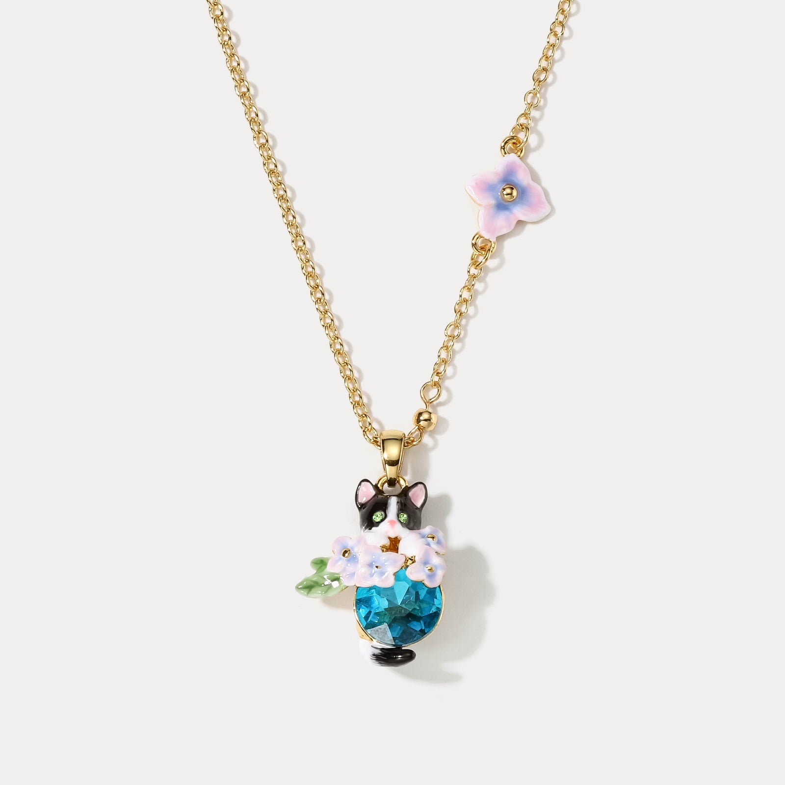 Show your love of cats with this purr-fect Kitten Sapphire Bloom Necklace. Adorn yourself with a sweet sparkly surprise to match your meow-velous style! Get rosying up with this dazzling accessory that will have you feeling purr-tiful!