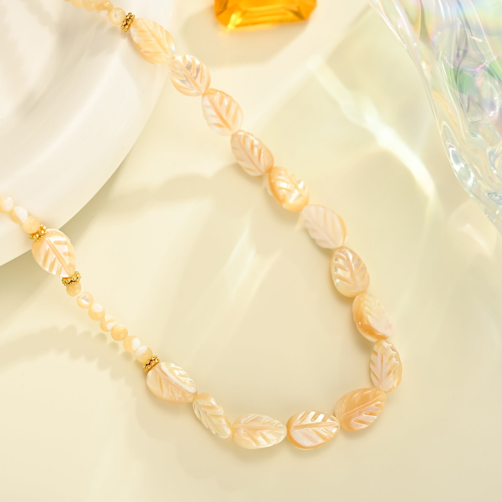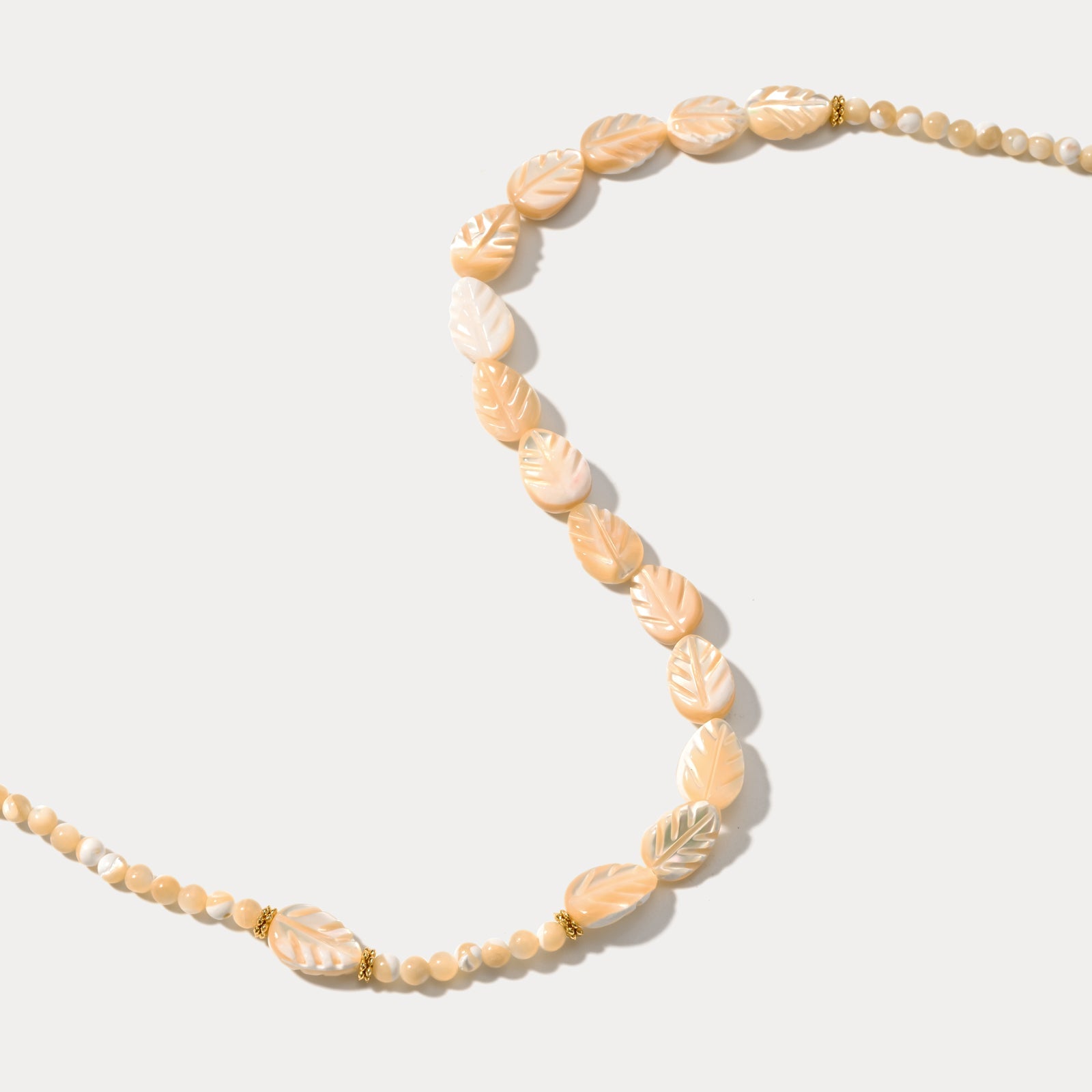 Carved Mother of Pearl Leaf Bead Necklace