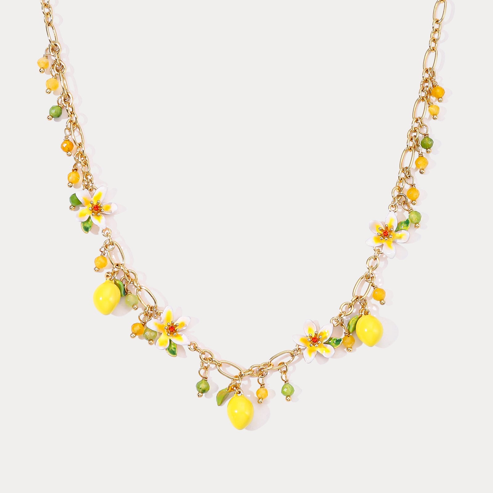 The Lemon Charm Necklace is like slipping summer right around your neck! Each lemon charm sways with a juicy sparkle, as if you could mix up a glass of sparkling lemonade on the spot. This isn't your typical 'serious' jewelry—it’s a little trick of sunshine that flips you straight into vacation mode. Pair it with a tee for an instant touch of fun, or with a sundress for that extra sweet glow. Fair warning: wearing it may trigger sudden urges to book a beach trip—or at the very least, a craving for lemonade. After all, when life gives you lemons, wear them! 🍋✨