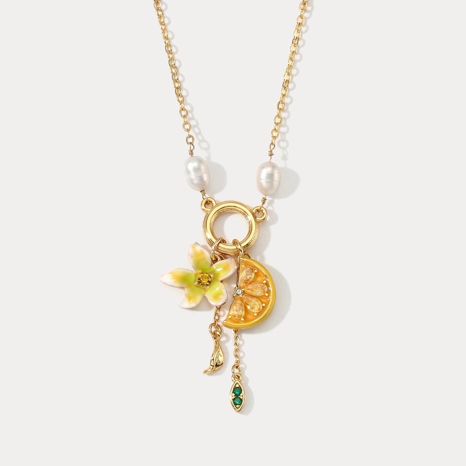 The Lemon Flower Necklace is a radiant treasure, featuring a brilliant lemon quartz gem that exudes vibrancy. Encased in a sleek setting of silver with an 18K gold finish, this necklace is a burst of sunshine around your neck, perfect for brightening any day and adding a cheerful sparkle to your favorite outfits.