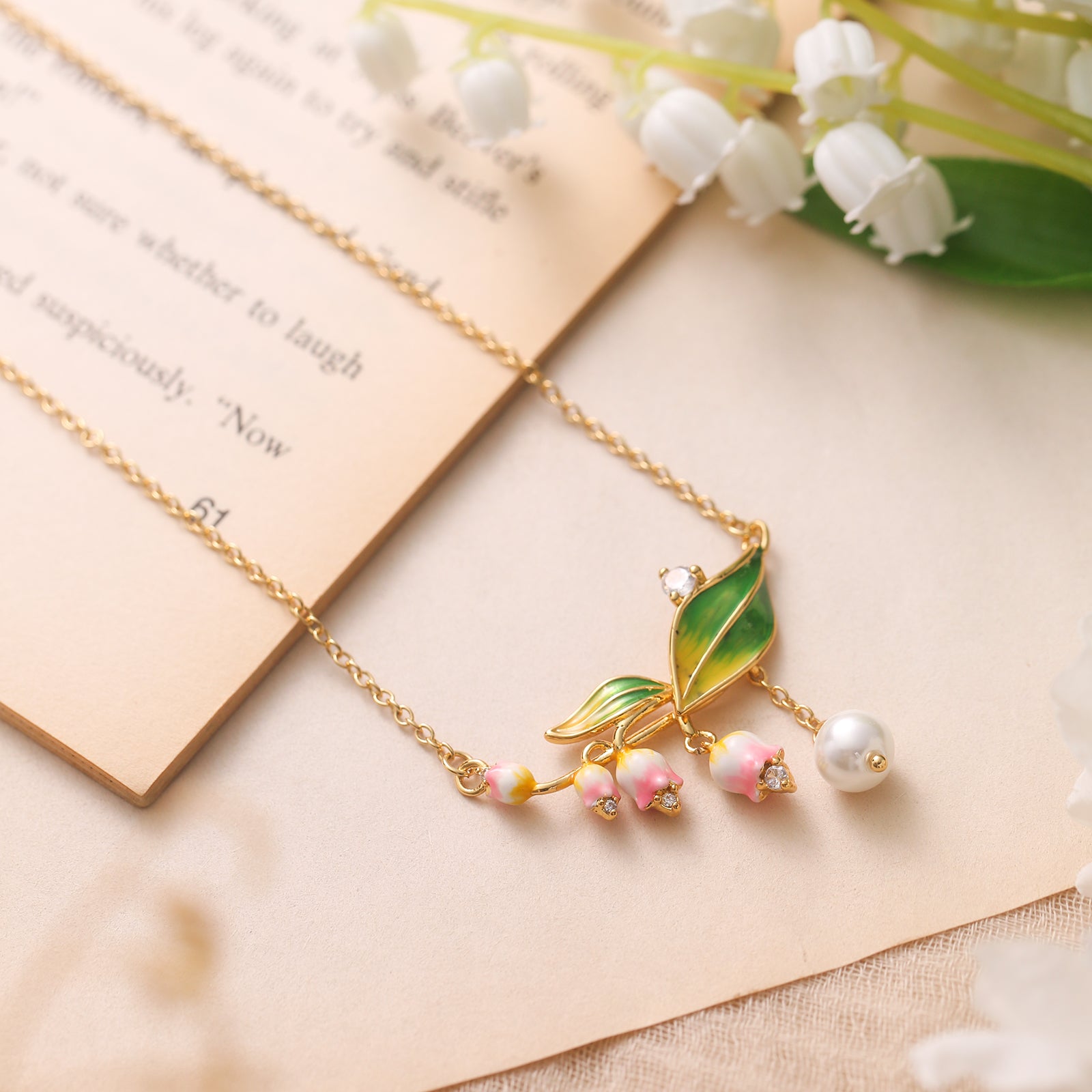Our exclusive Lily Of The Valley Pearl Necklace is a luxurious accessory that adds a touch of elegance to any outfit. Crafted with enamel and adorned with a cluster of lily of the valley charms, this beautiful necklace will elevate your style with its timeless beauty and sophistication.