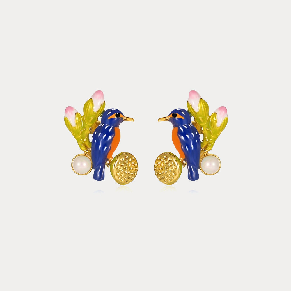 Unleash your inner goddess with our Lotus Kingfisher Enamel Earrings! These stunning earrings feature delicate lotus and vibrant kingfisher designs, adding a touch of elegance to any outfit. Handcrafted with high-quality enamel, these earrings are perfect for adding a pop of color and charm to your style. Elevate your wardrobe with these one-of-a-kind earrings!