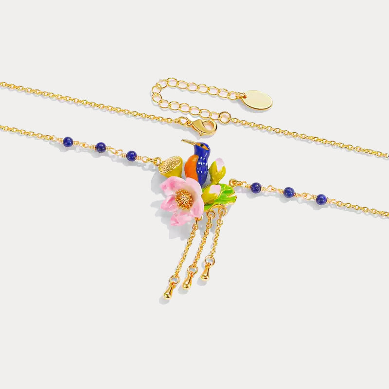 Lotus Kingfisher Enamel Necklace