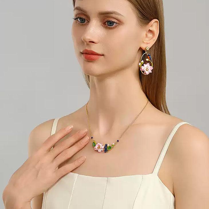 Elevate your style with our exquisite Lotus Kingfisher Necklace. Crafted with intricate details, this necklace is a statement piece that will add a touch of elegance to any outfit. Let the vibrant colors and unique design of the lotus and kingfisher bird transport you to a world of beauty and grace.