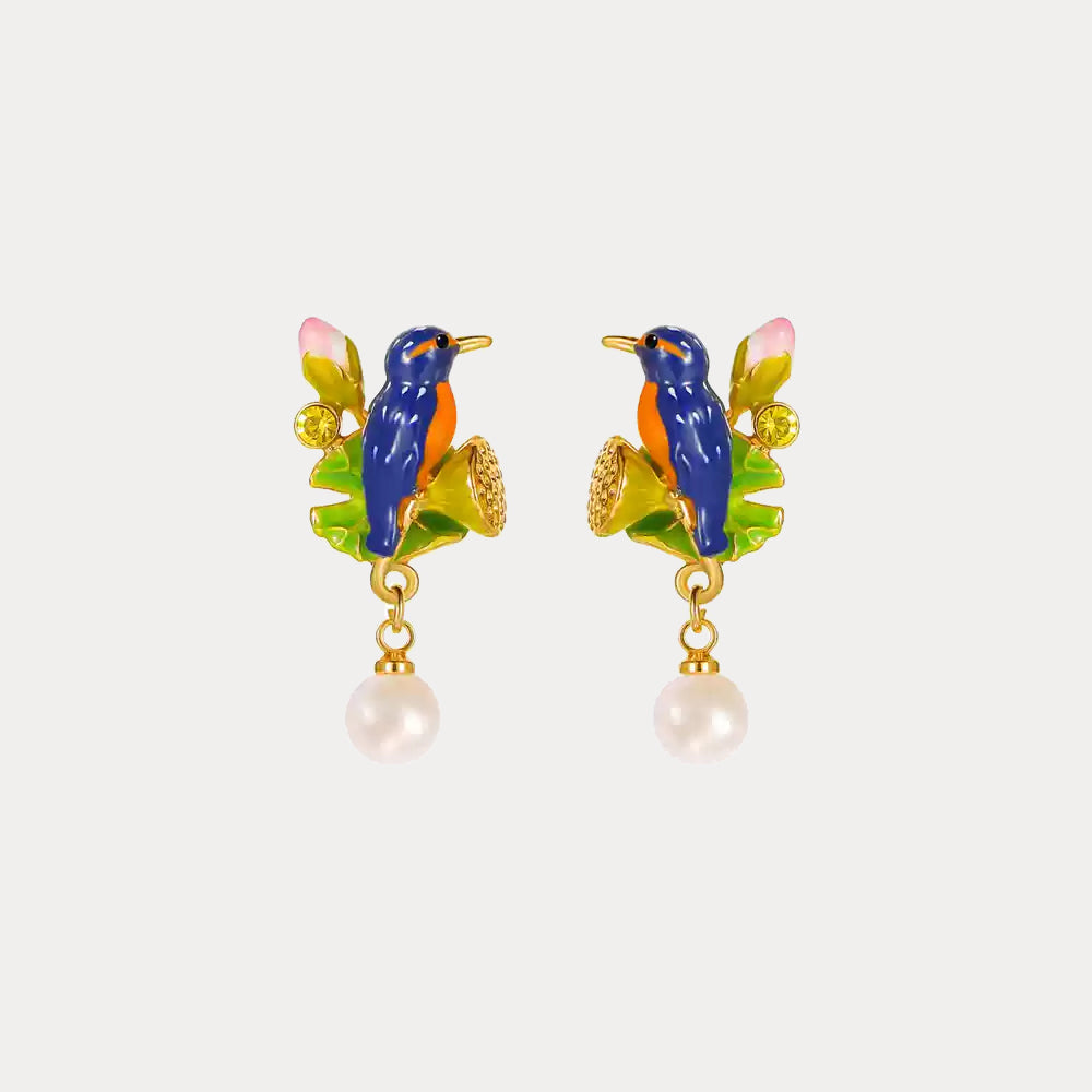 Lotus Kingfisher Pearl Earrings