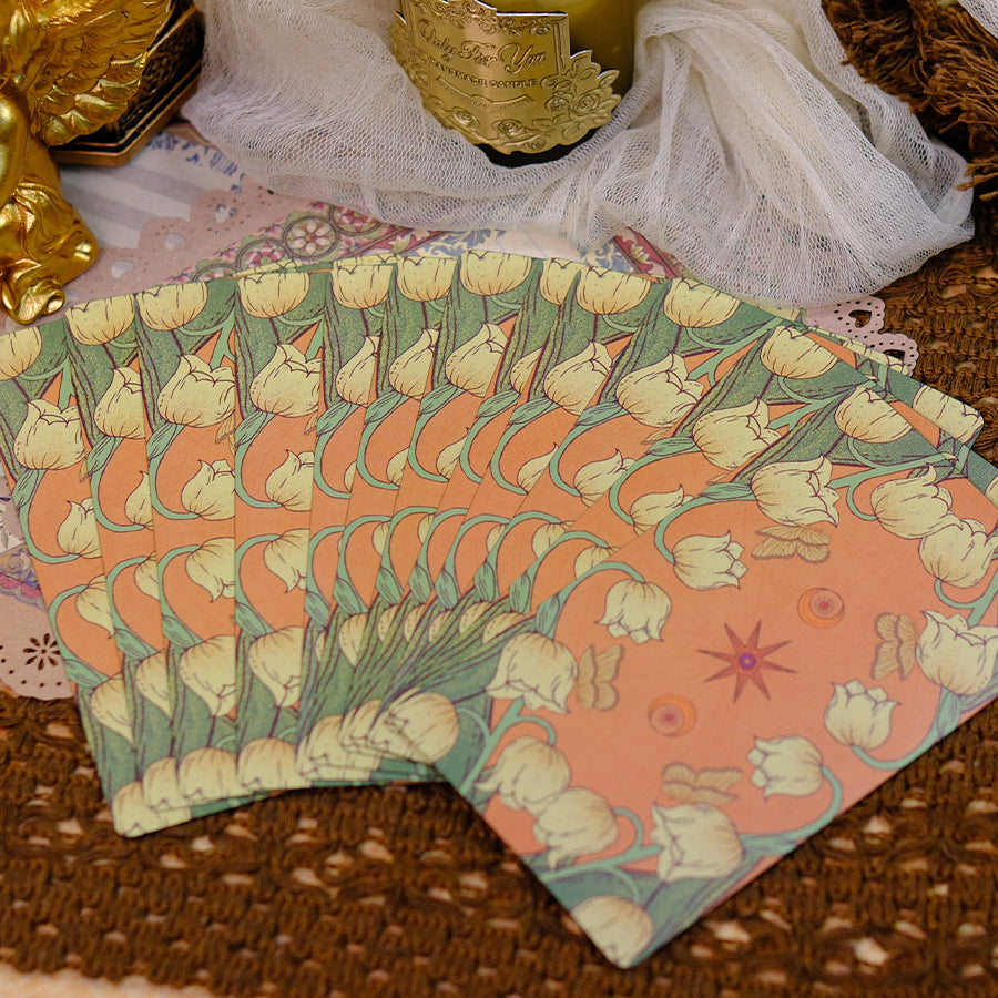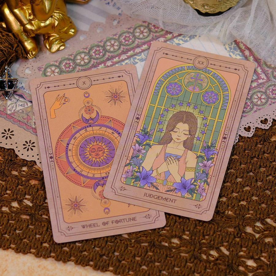 A vintage, feminine deck honoring individuality, the soul-healing Lullaby Tarot is crafted for introspection and spiritual care. We invite you to tune in to the rhythms of your inner feelings and emotions while hoping to inspire self-dialogues. Stylistically, this deck is steeped in breezy ease and vintage sophistication, exuding a profound healing energy.