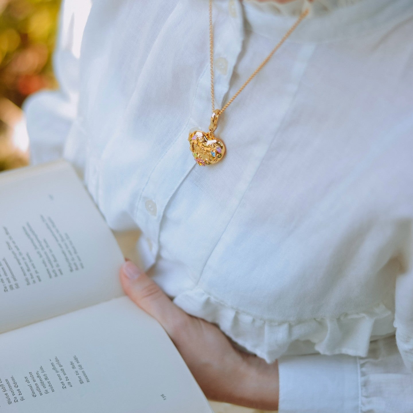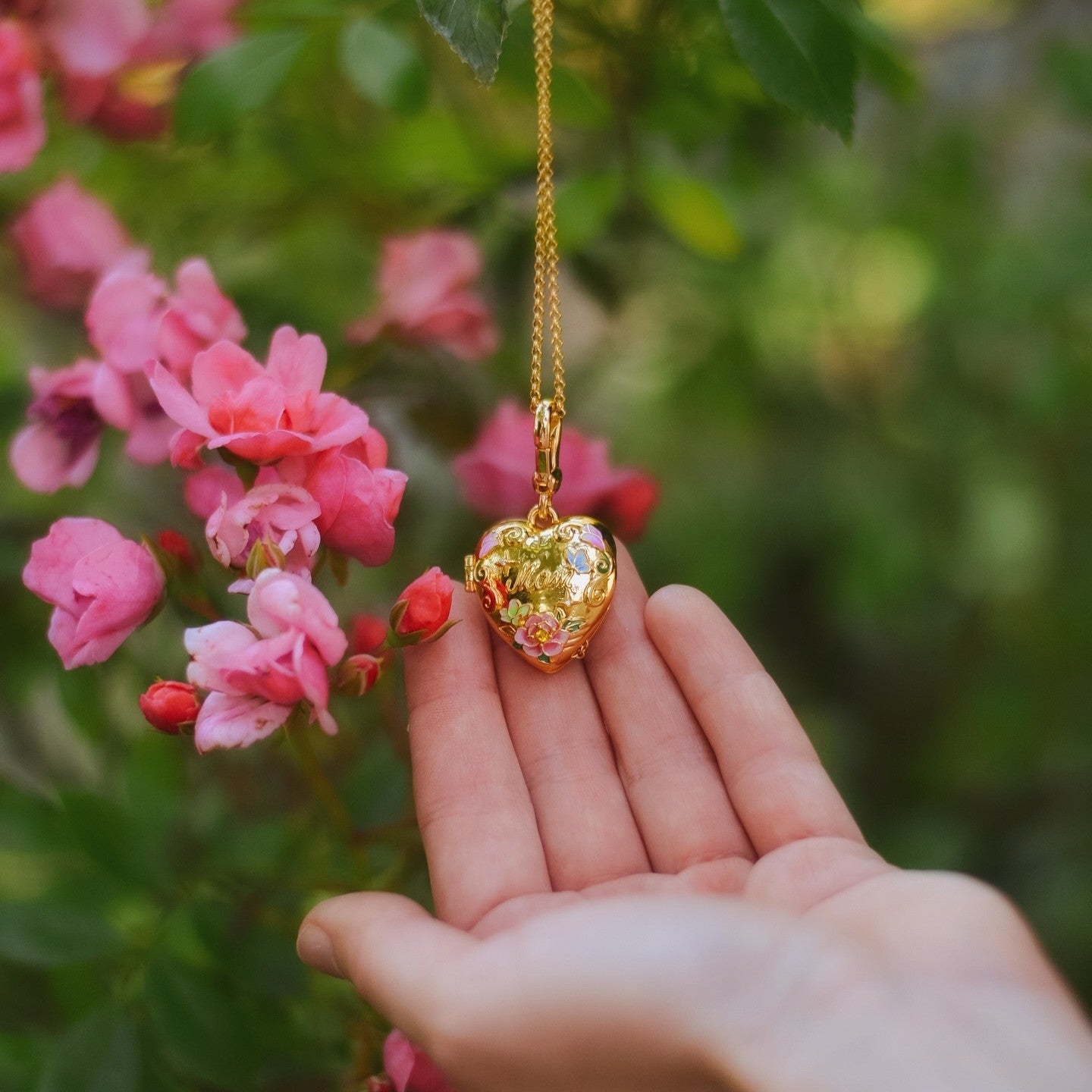 The text on the gold heart inside of the pendant can be customized according to your preferences. Please allow 7-15 days for customing before shipping