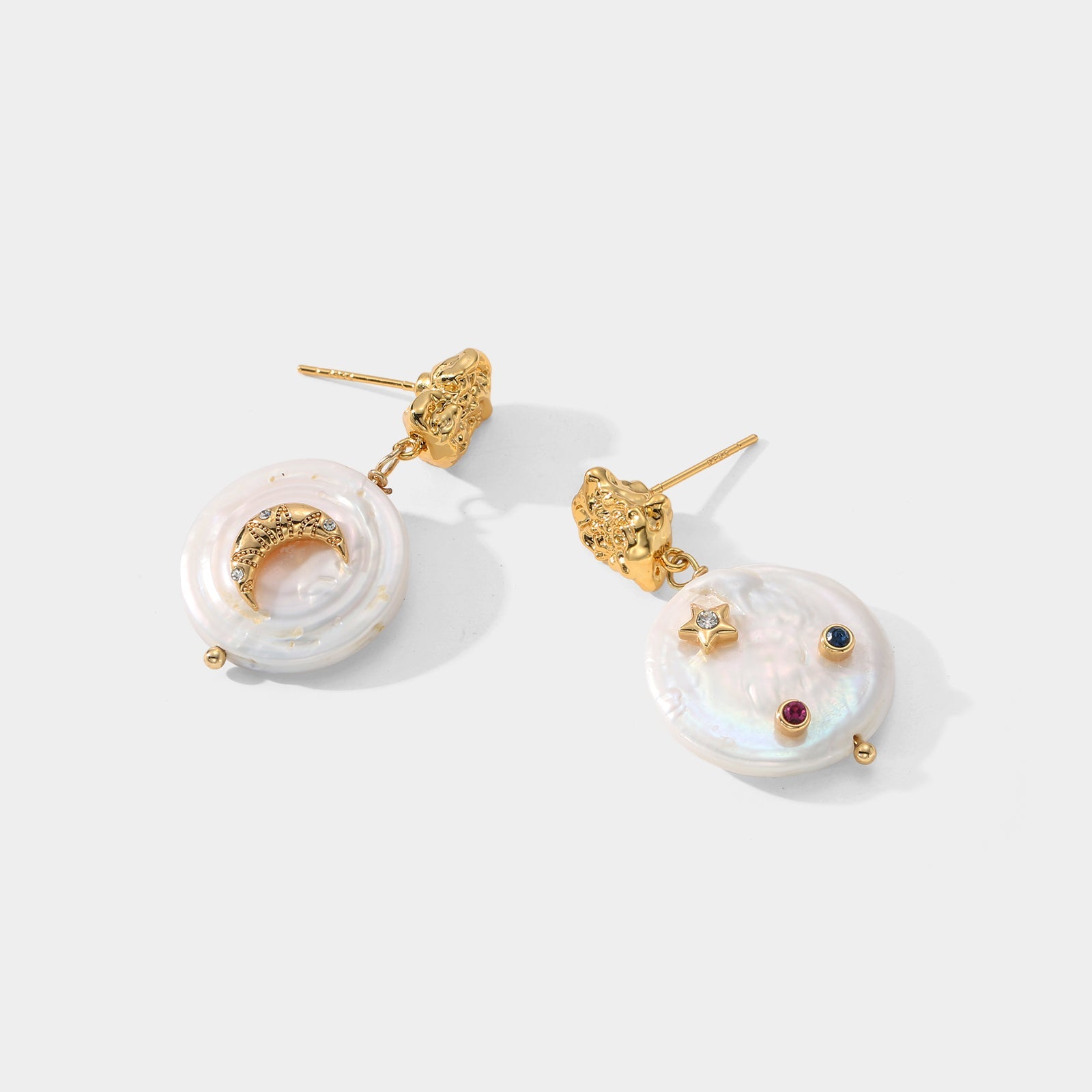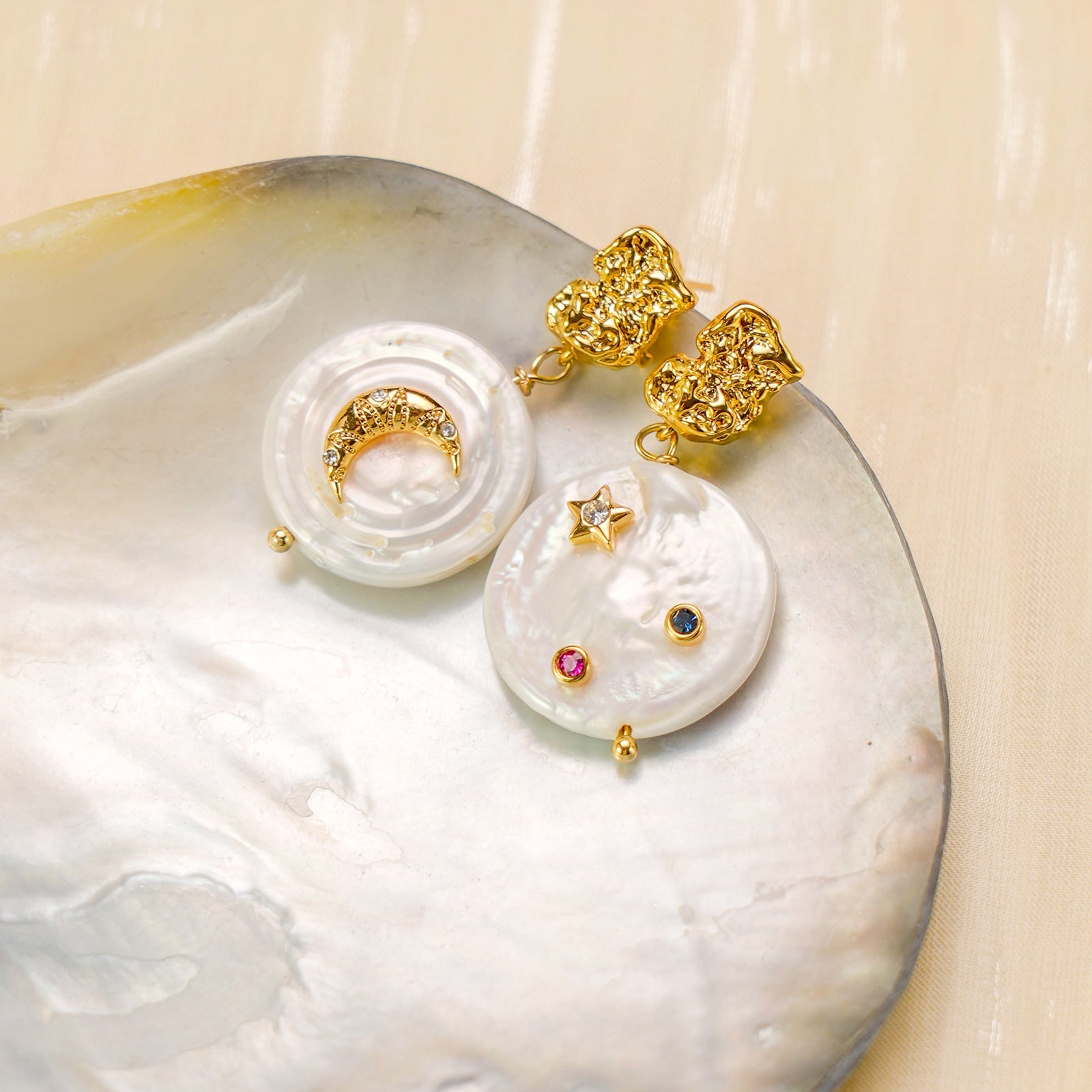 Elevate your elegance with these Oyster Pearl Earrings, featuring lustrous pearls set against delicate gold moon and star accents. Perfect for adding a touch of celestial charm to any outfit, they blend timeless beauty with a modern twist. Perfect for daily use or special events, these gold and pearl earrings are designed to enhance your individual style with elegant subtlety.