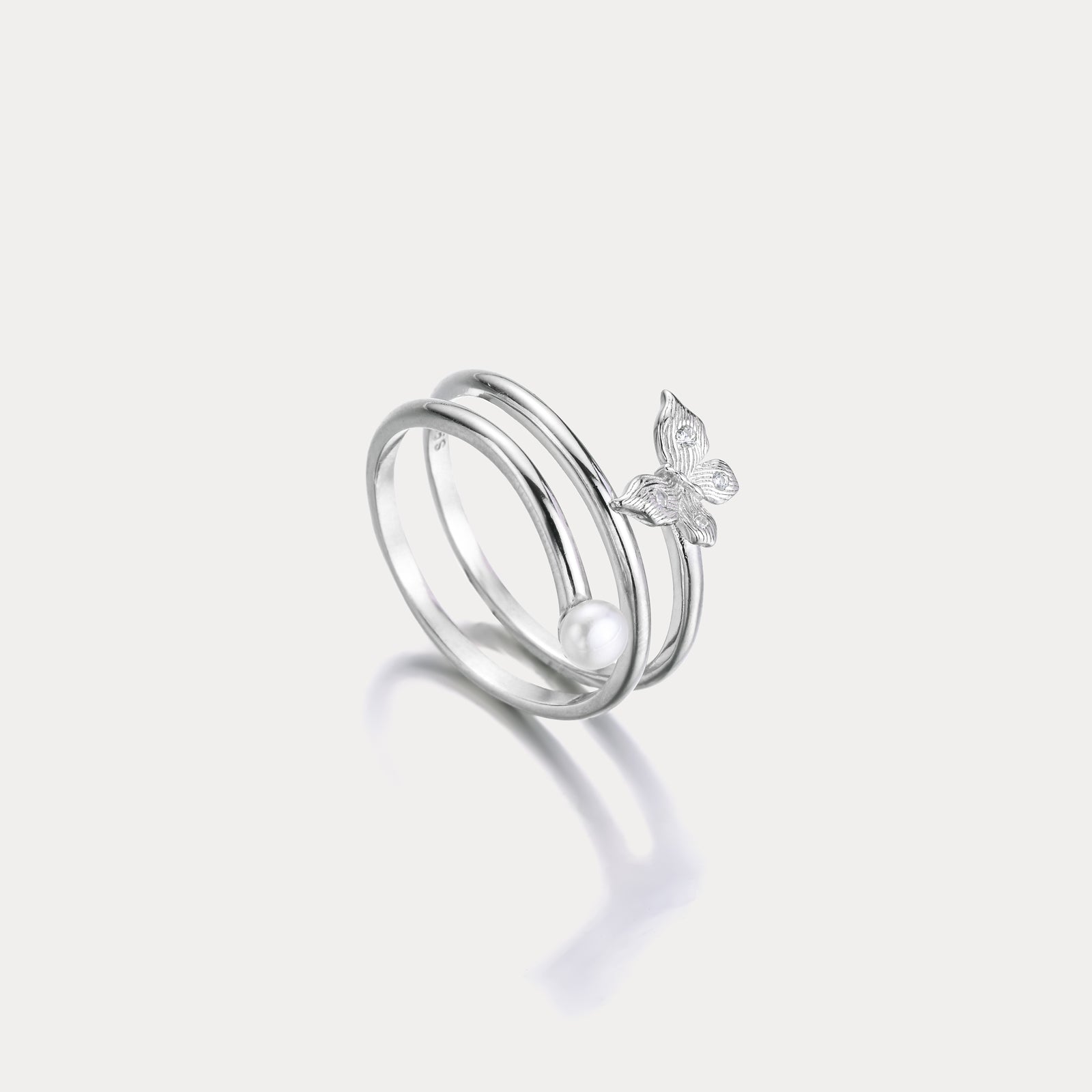 This beautiful ring features a delicate butterfly design with three layers, adding depth and dimension to the piece. Perfect for any occasion, this pearl butterfly ring will make a statement and evoke feelings of grace and elegance. A must-have for any jewelry collection!