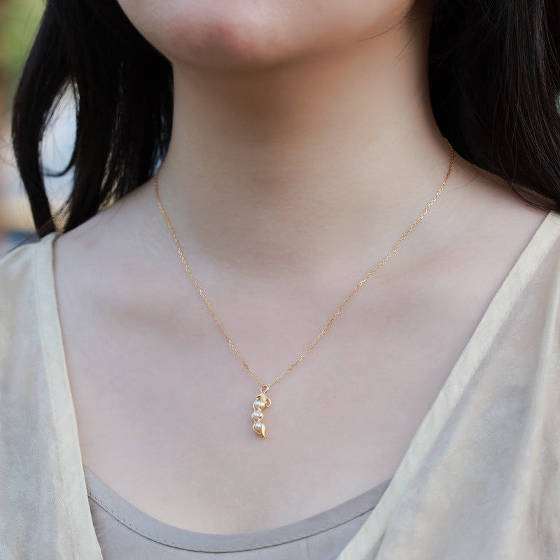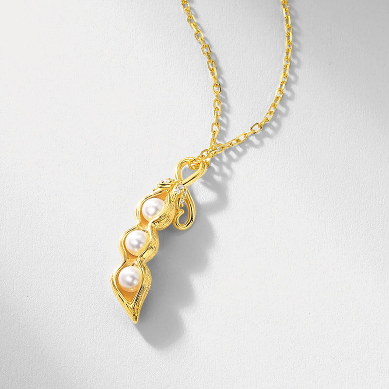Delight and charm come together in the Peas in a Pod Necklace, featuring a playful design that captures the warmth of connection. Three rounded 'peas' sit snugly inside a finely crafted pod, symbolizing friendship, family, and shared moments. The polished surface catches the light with a soft gleam, adding a playful sparkle to any outfit. Light and delicate, this necklace can be worn alone for a subtle statement or layered for a more stylish look, making it a joyful and meaningful addition to any jewelry collection.