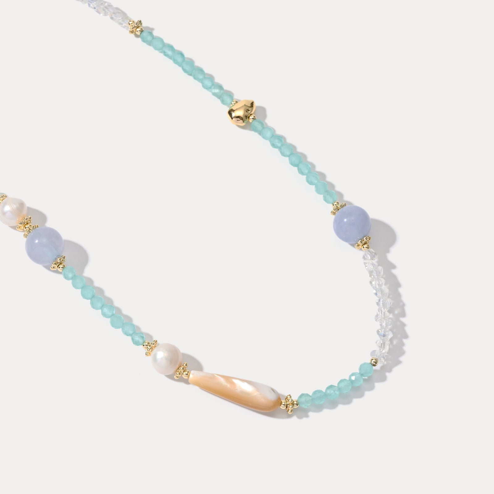 Experience the refreshing and lively feeling of summer with our Peppermint Natural Stone Beaded Necklace. With its pastel color-matching, each necklace features different sparkling natural stones and pearls with a gentle allure that captures the beauty of nature. Perfect for daily wear or adding a touch of holiday spirit to your look!