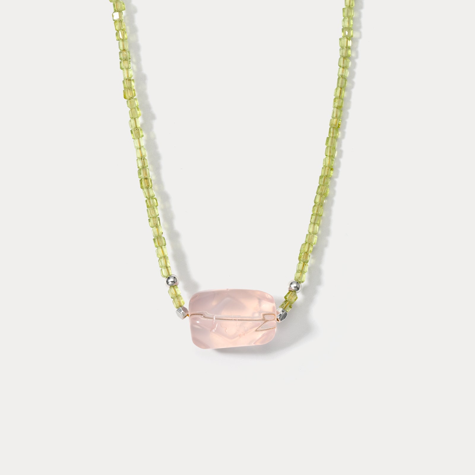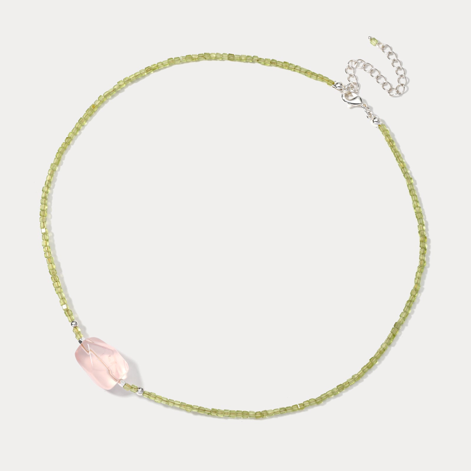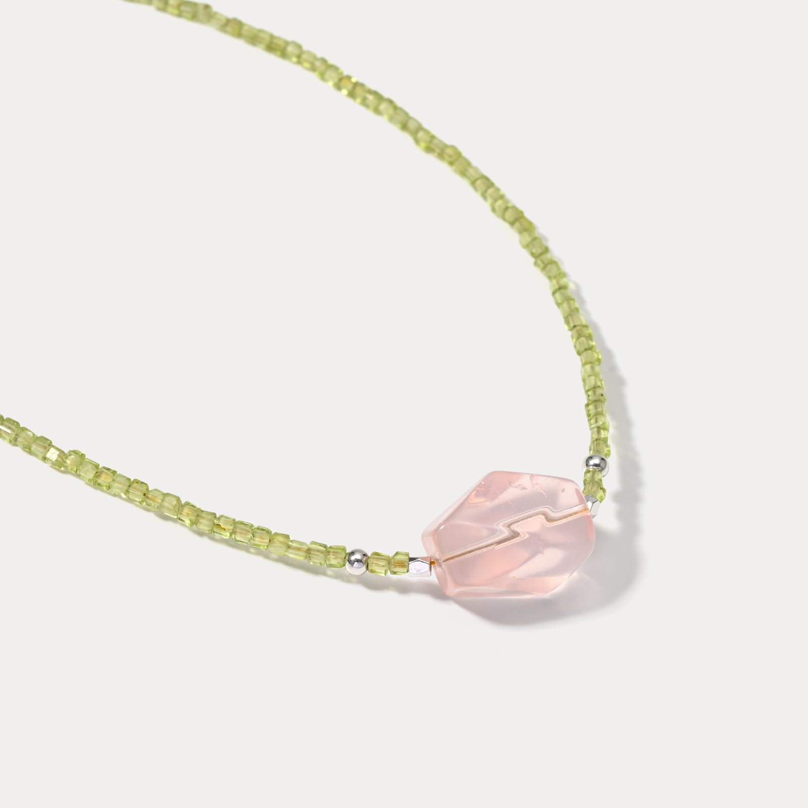 This Pink Cubic Crystal Necklace is the perfect addition to your summer wardrobe. The pastel pink of the cubic crystal makes it eye-catching and unique, bringing a sense of refreshment in the hot summer. Made with olivine and gemstones, its style and sophisticated design will inspire and enchant all who see it. Upgrade your accessory game with this stunning necklace!