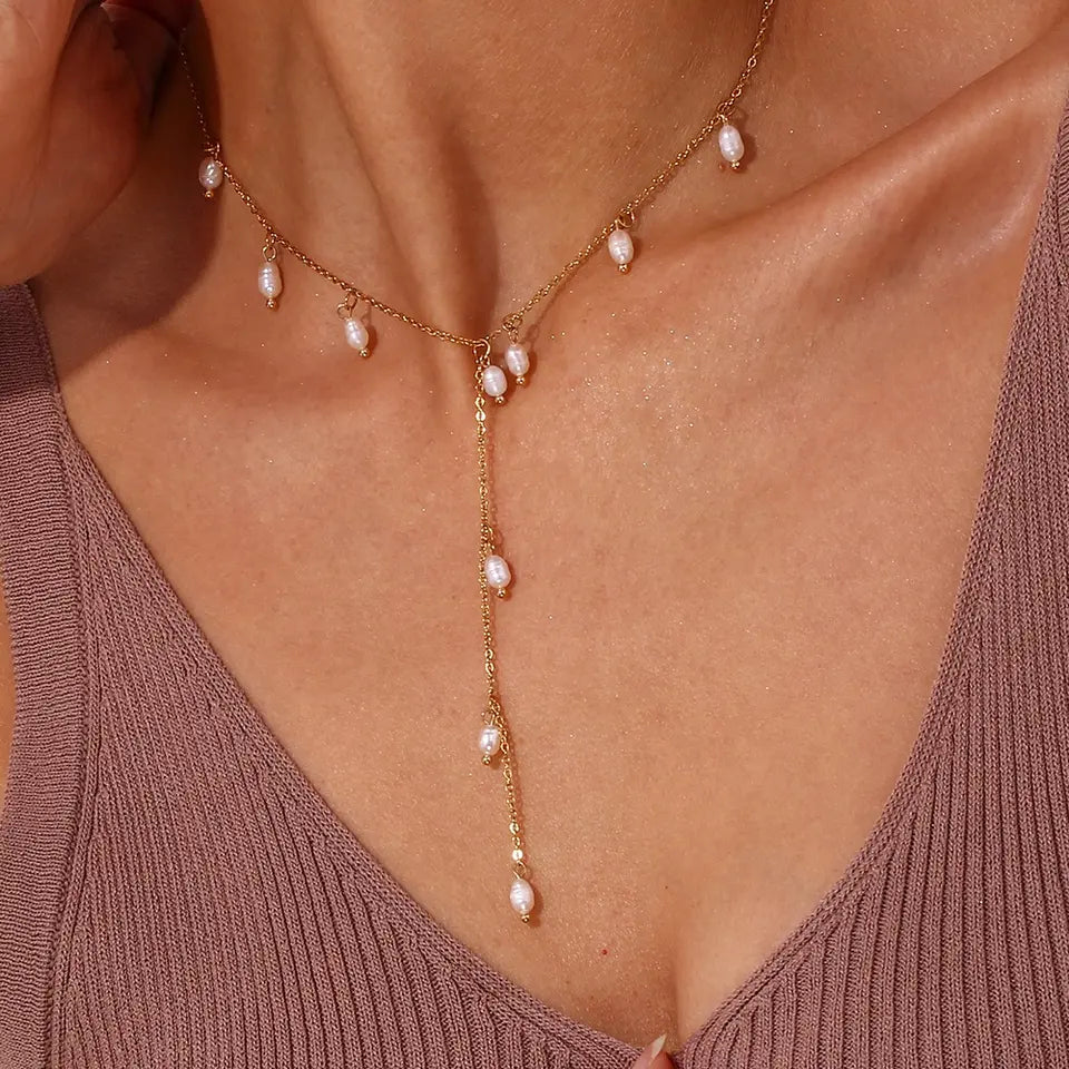 Sacred Drops - Necklace with Pearls and 18k Stainless