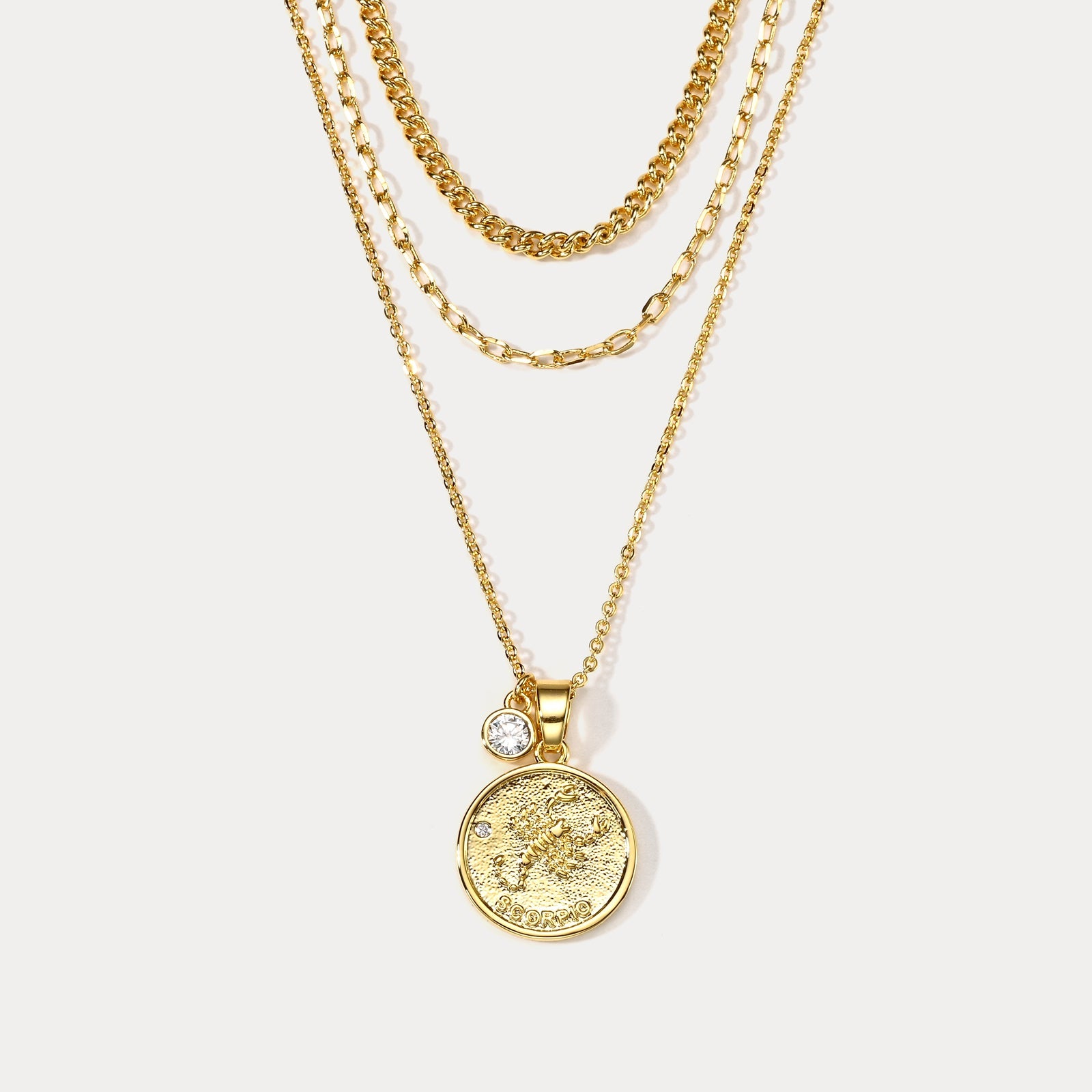 Unleash your inner Scorpio with this layered necklace. Embrace your astrological sign in a playful way with this unique piece. Show off your personality with a touch of zodiac-inspired style. Perfect for the quirky and fun-loving individual. (Zodiac sign not included!)